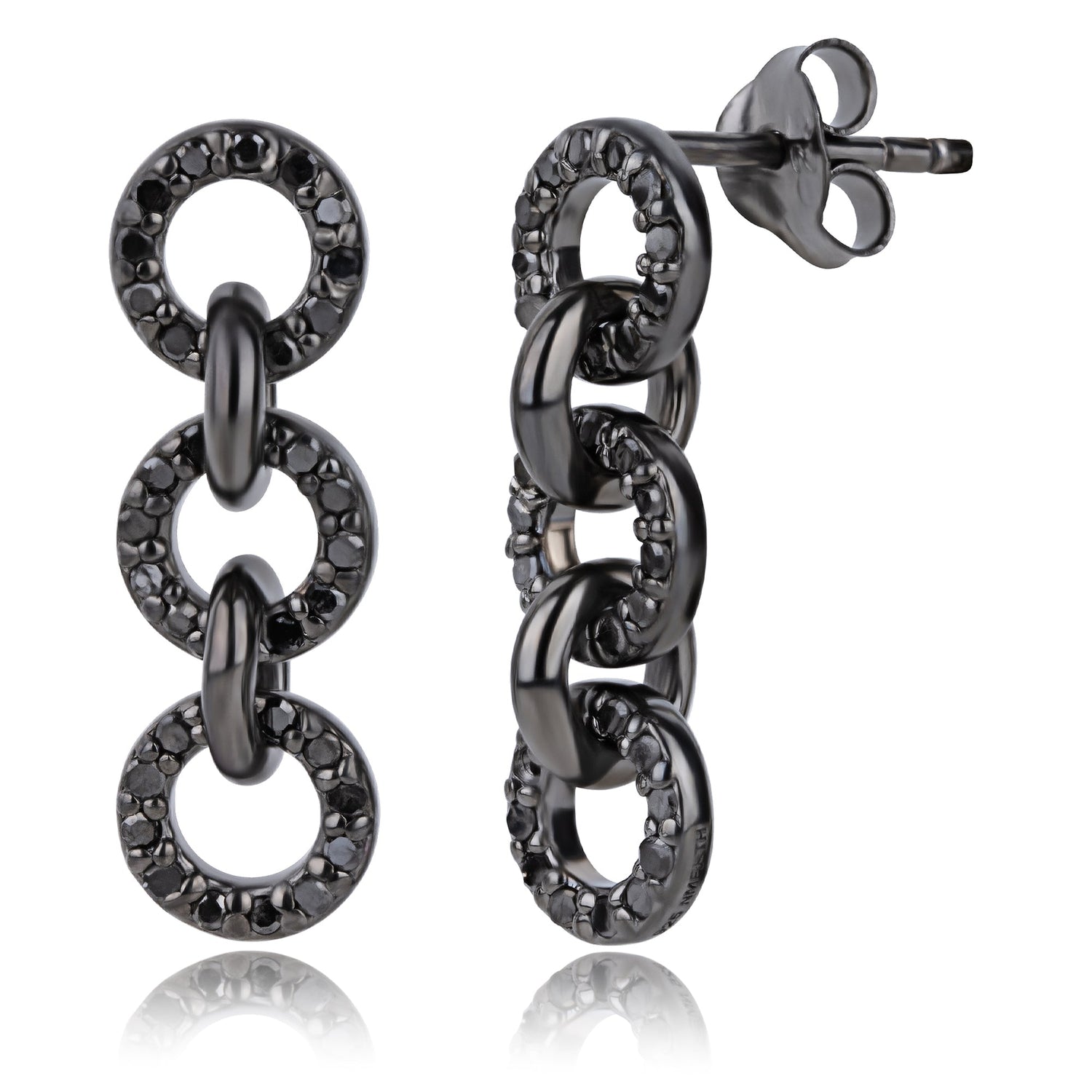 These Real Black Diamond Chain Link Drop Earrings by MaxColor exude modern edge and luxury with dramatic black diamonds and sleek chain design, perfect for elevating any outfit.