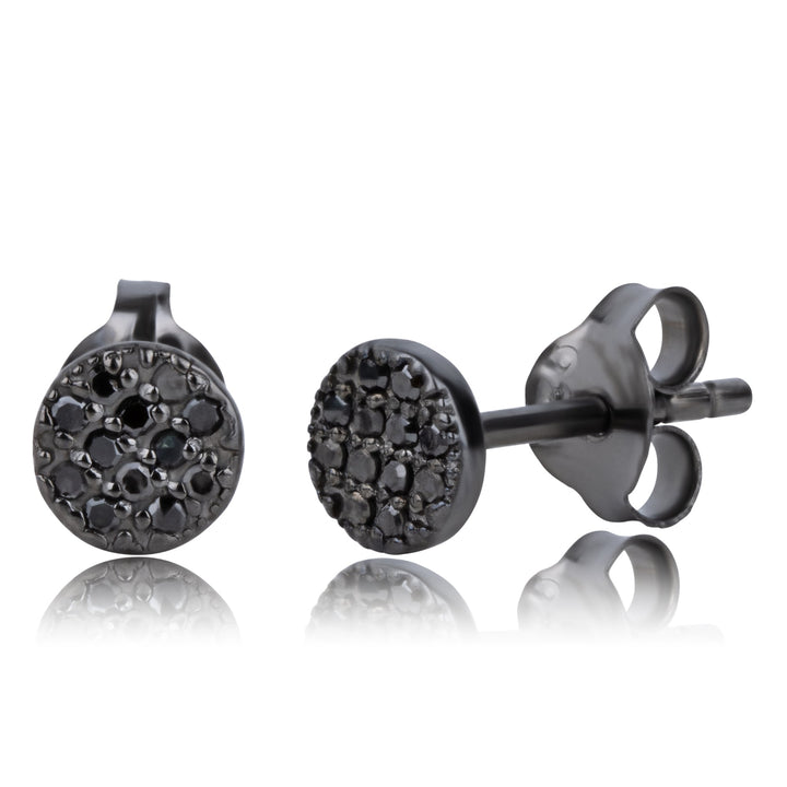 Real Black Diamond Round Stud Earrings in Sterling Silver