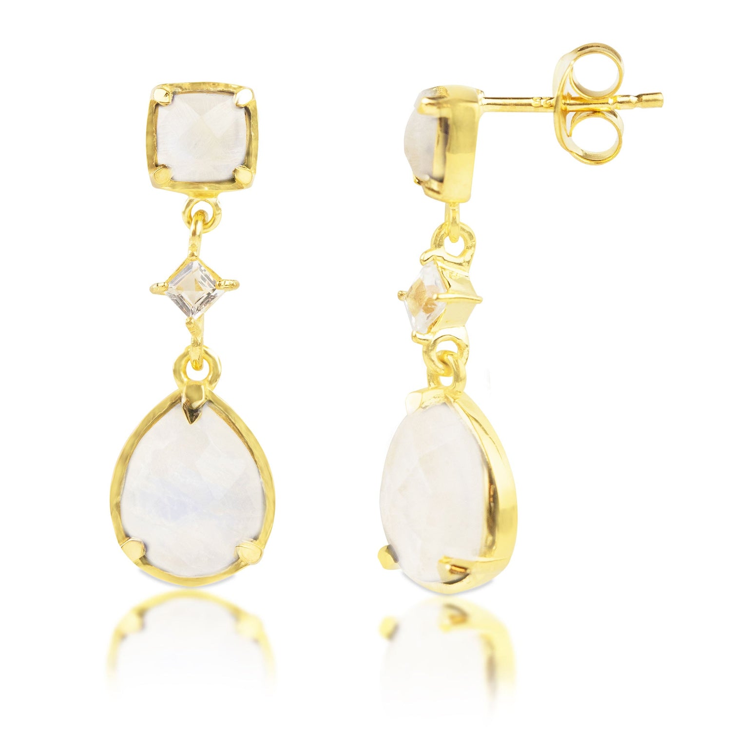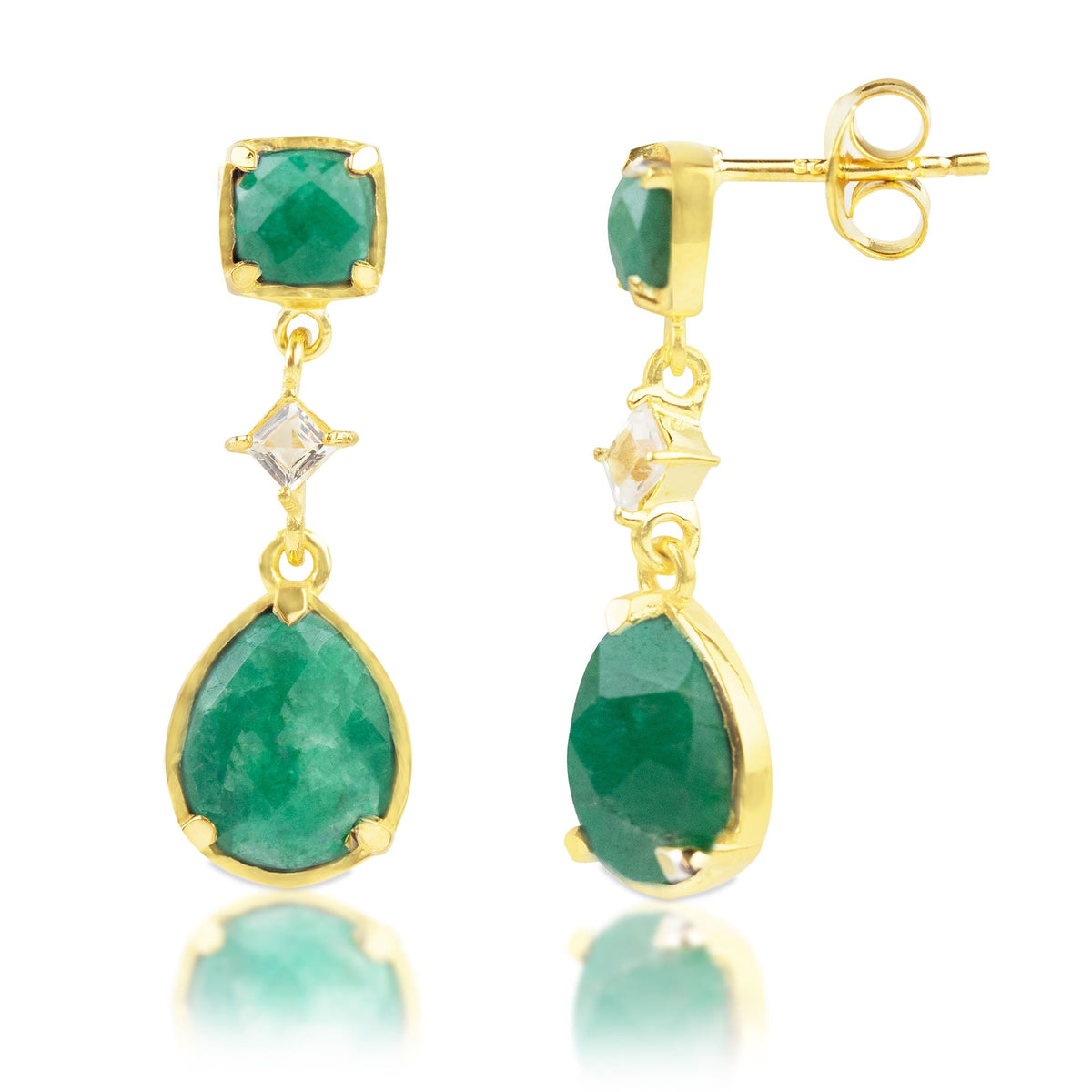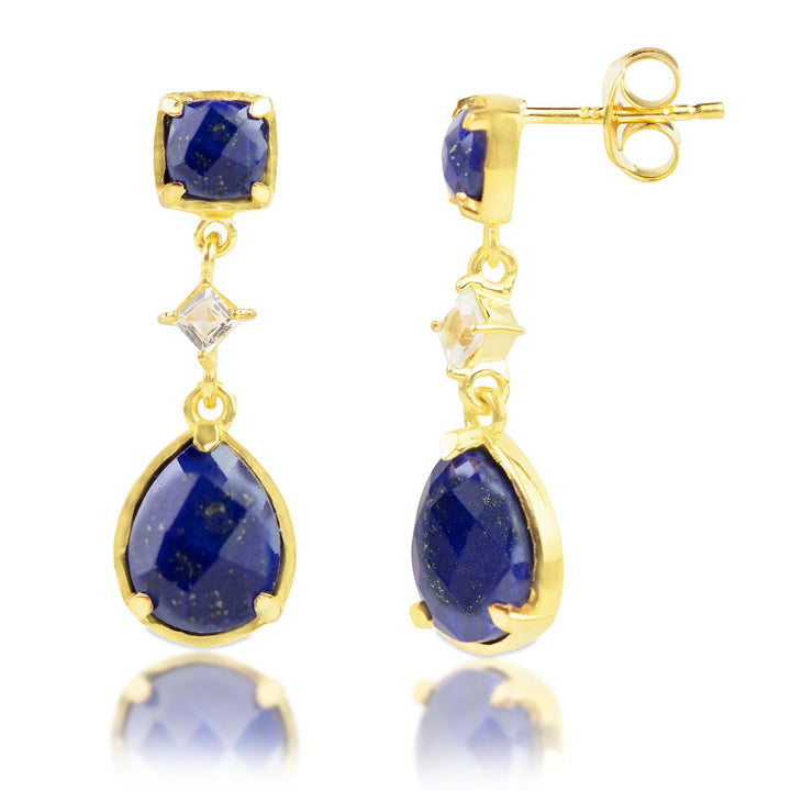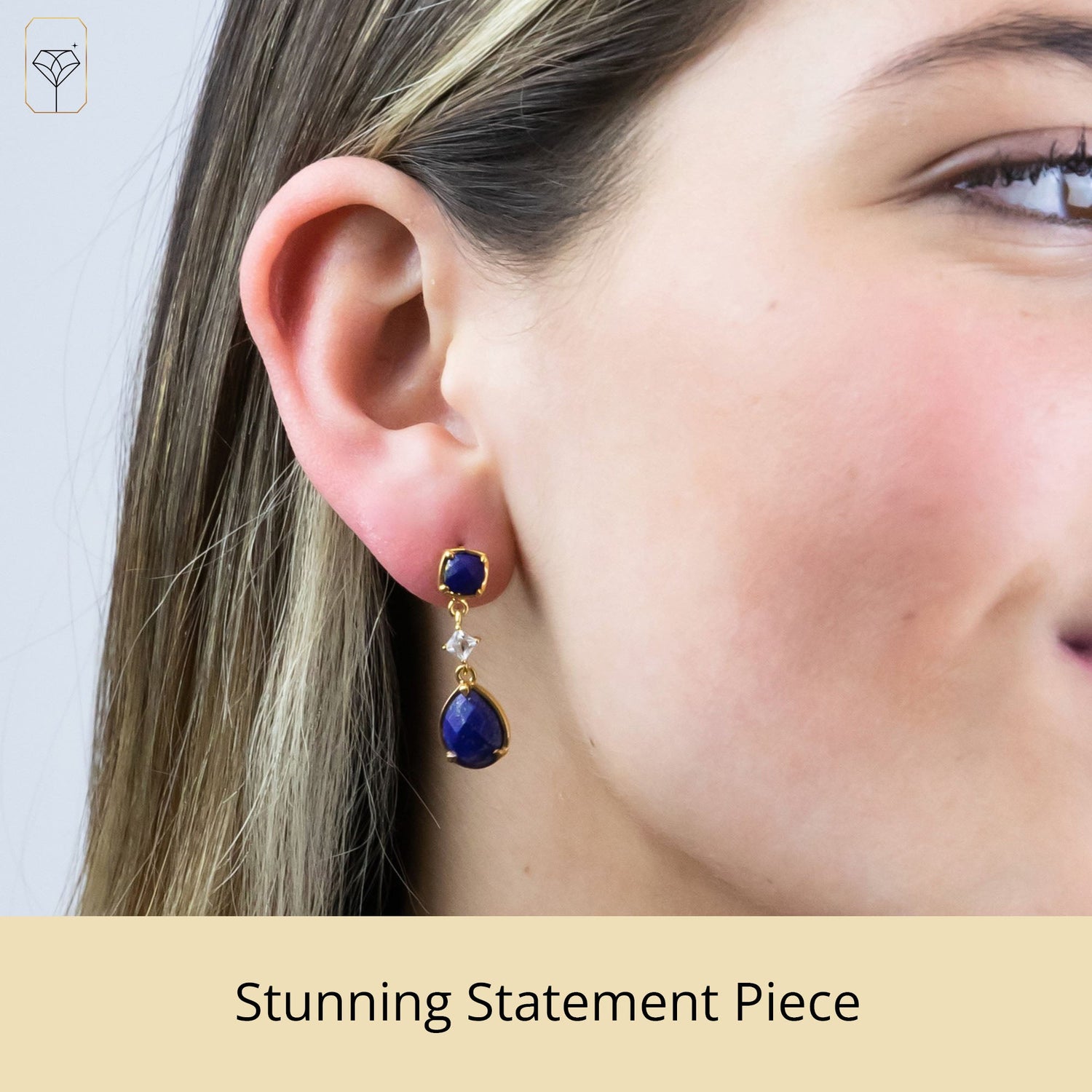 18K Gold Plated Genuine Blue Sapphire 3 Stone Dangle Drop Earrings