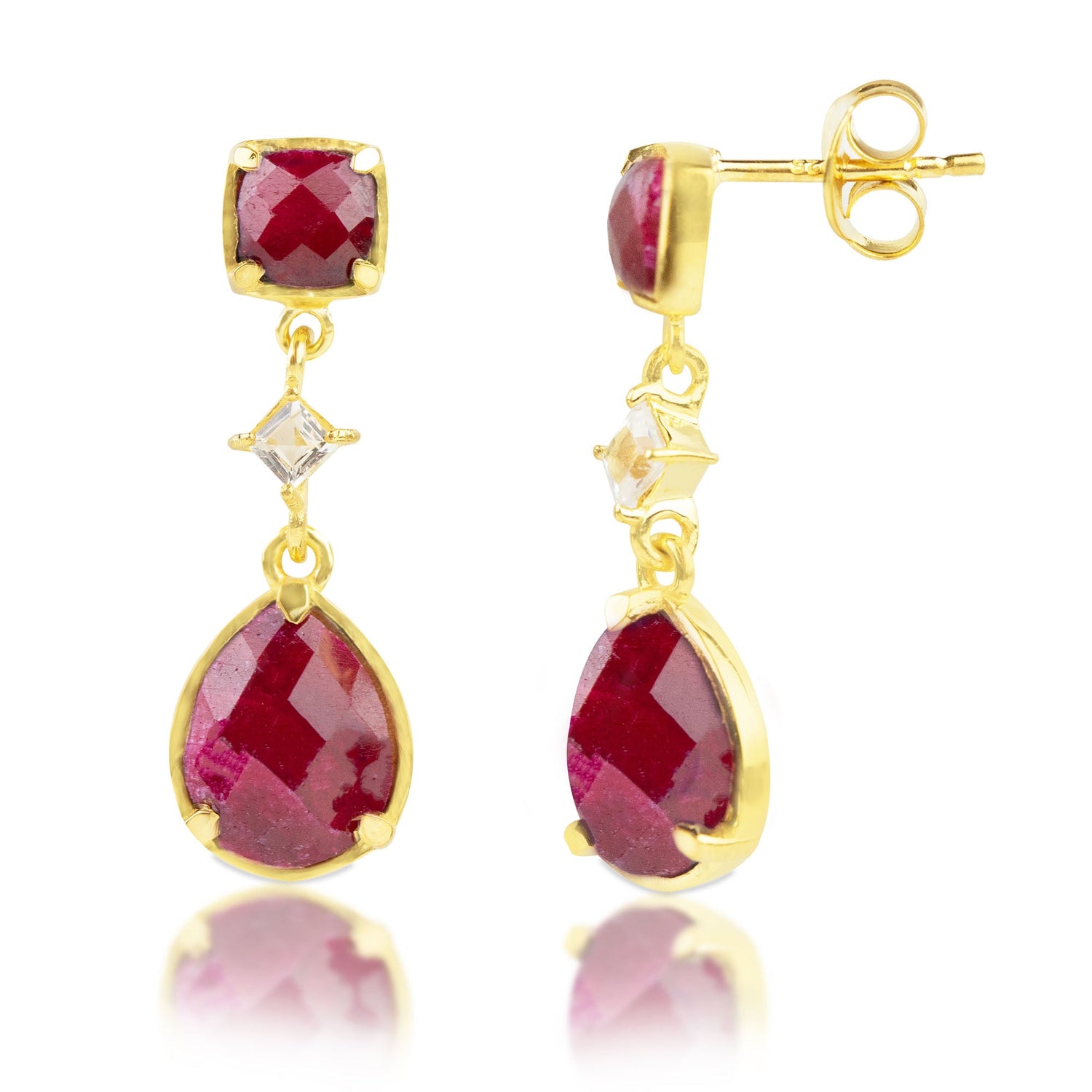 Crafted in 18k gold plating with genuine blue sapphires (1.26–1.50 total carat weight). Linear drop earring style.