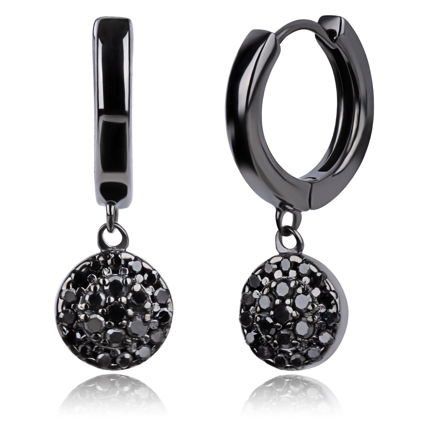 Made in sterling silver with 0.26–0.50 total carats of black diamonds. Huggie hoop design.