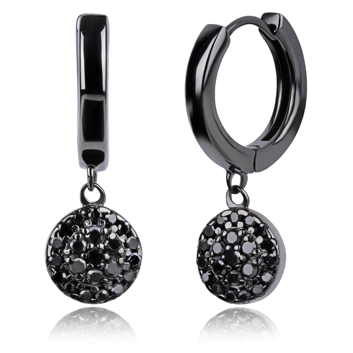 These Real Black Diamond Round Disc Huggie Hoop Earrings by MaxColor offer a bold, contemporary edge with deep black diamond accents set against bright sterling silver. A sleek, dramatic choice for modern luxury.
