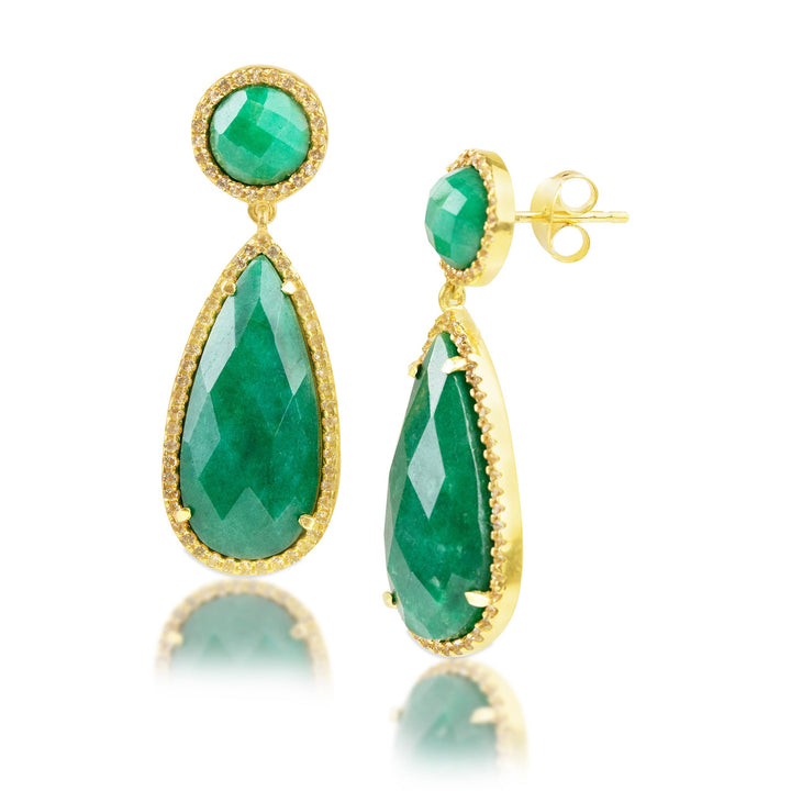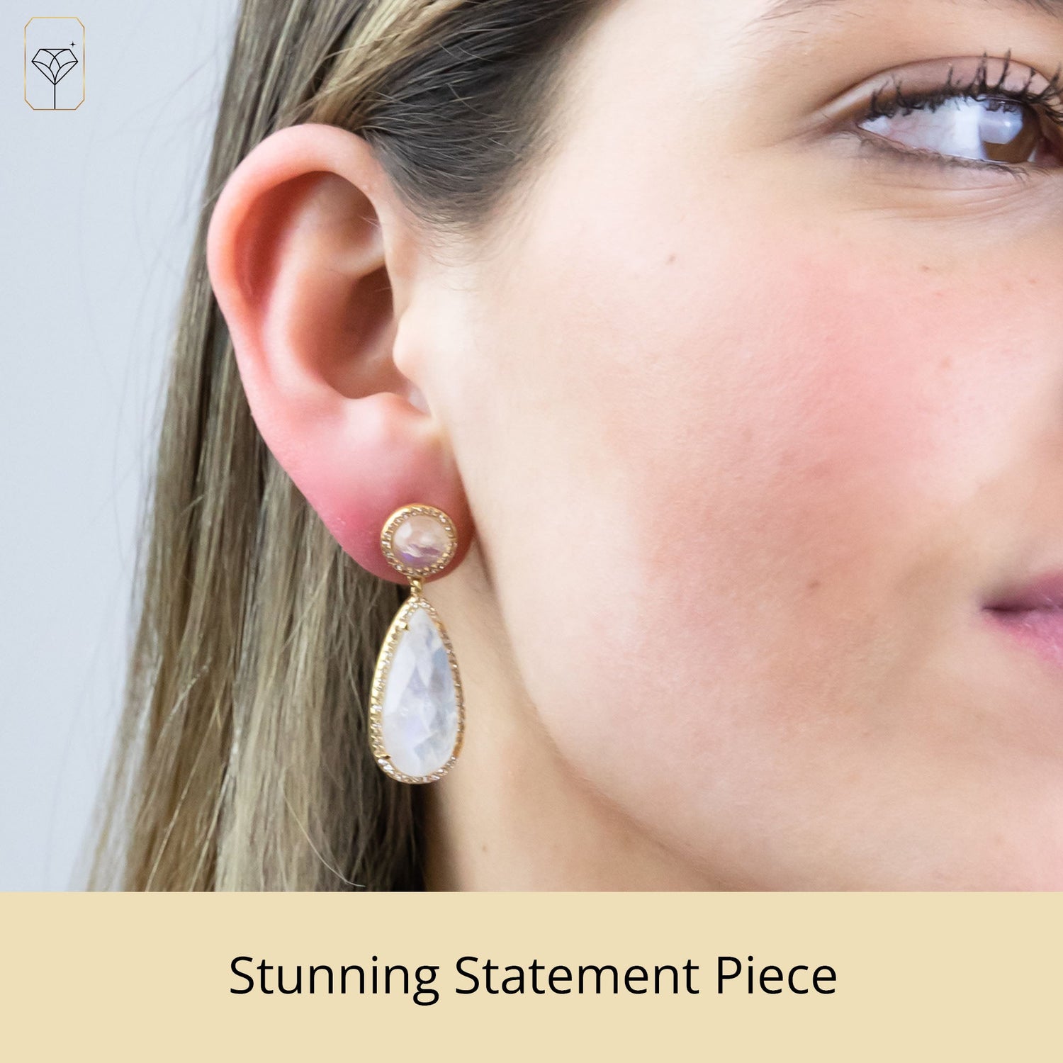 18K Gold Plated Genuine Moonstone 2 Stone Dangle Drop Earrings