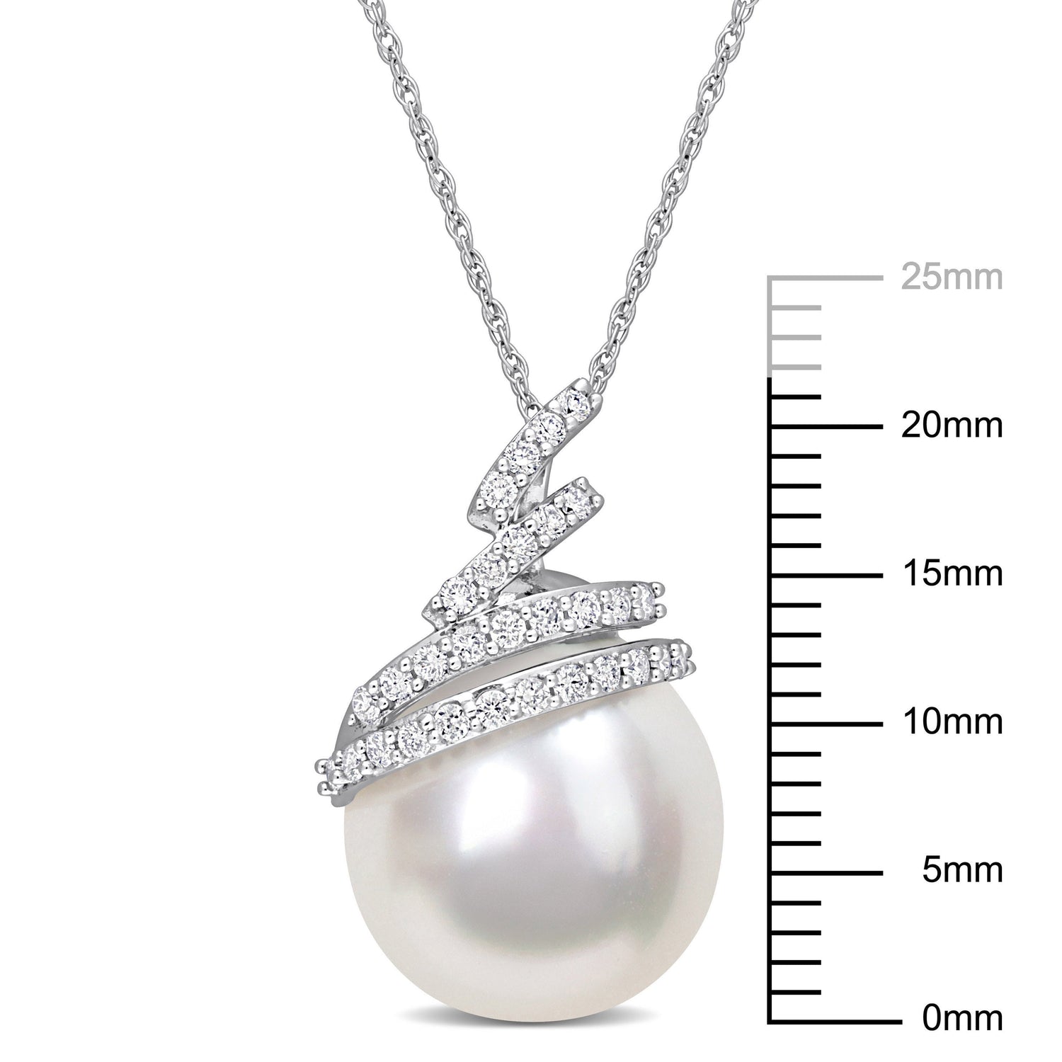 Crafted in 10K white gold with 12-12.5mm South Sea cultured pearl and 1/4 carat total weight diamonds. Necklace length: 17 inches. Spring ring clasp.