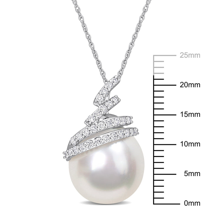 12-12.5mm South Sea Cultured Pearl and 1/4 ct TDW Diamond Drop Pendant with Chain in 10k White Gold