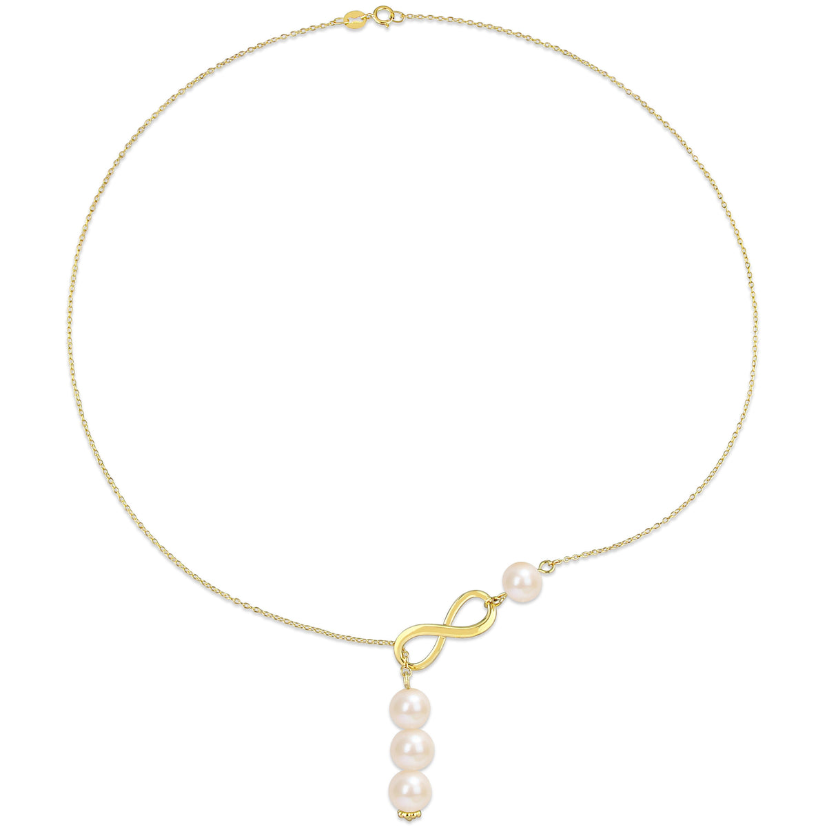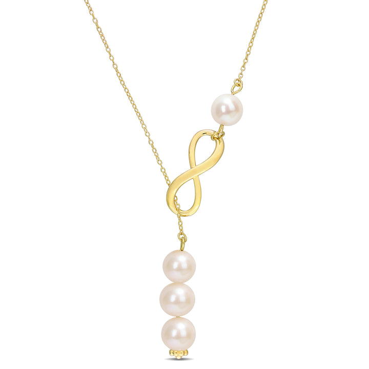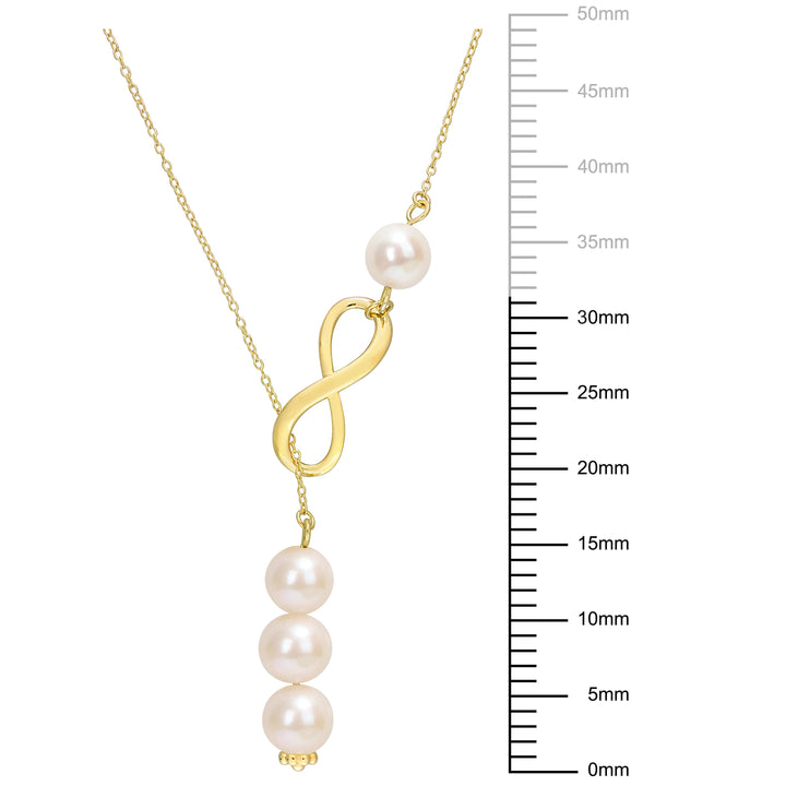 8-9mm Cultured Freshwater Pearl Infinity Lariat Necklace in Yellow Silver