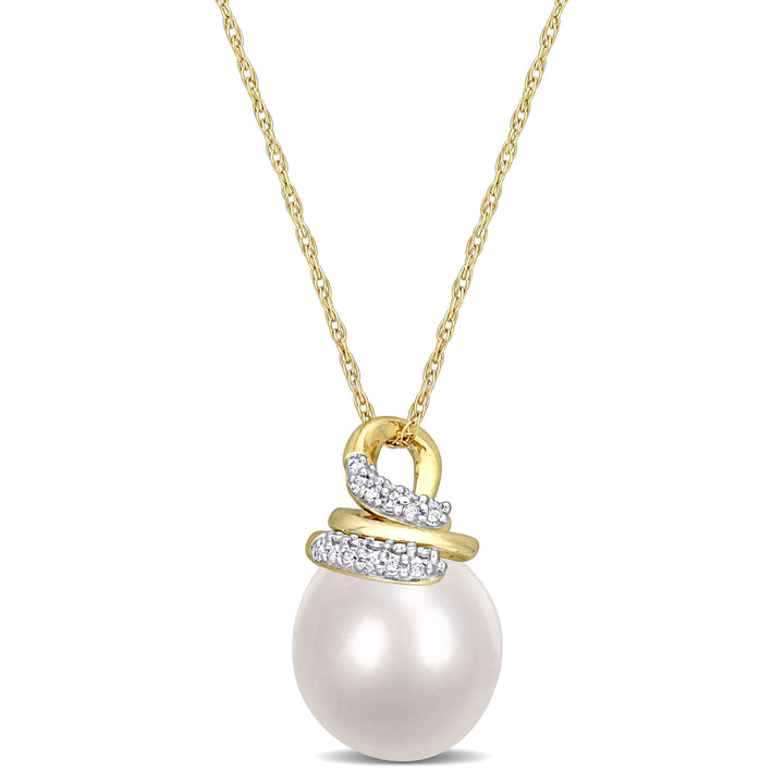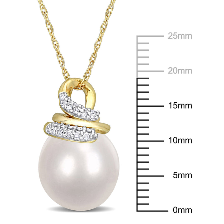 9-10mm South Sea Cultured Pearl and 1/10ct TW Diamond Wrap Pendant with Chain in 10k Yellow Gold