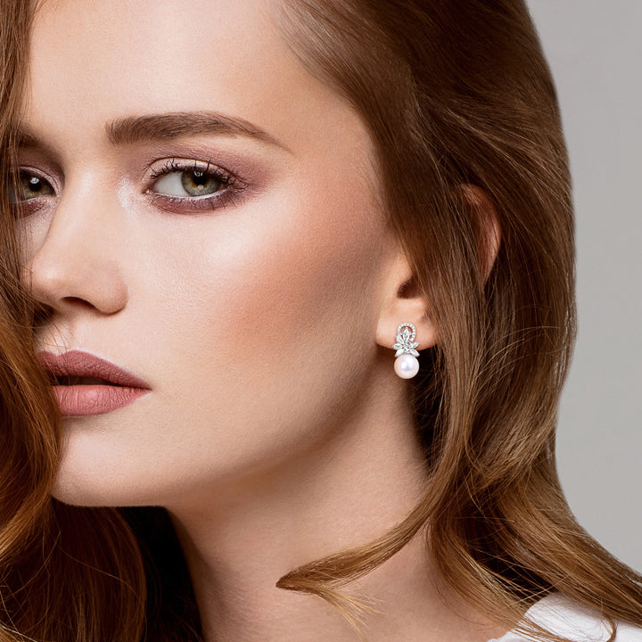 These Cultured Freshwater Pearl, Aquamarine, and Diamond Flower Drop Earrings by Mimi & Max are romantic and refined, featuring luminous pearls surrounded by aquamarine petals and diamond accents. Perfect for weddings or elegant evenings, these earrings bring a delicate touch of floral beauty and timeless sophistication.