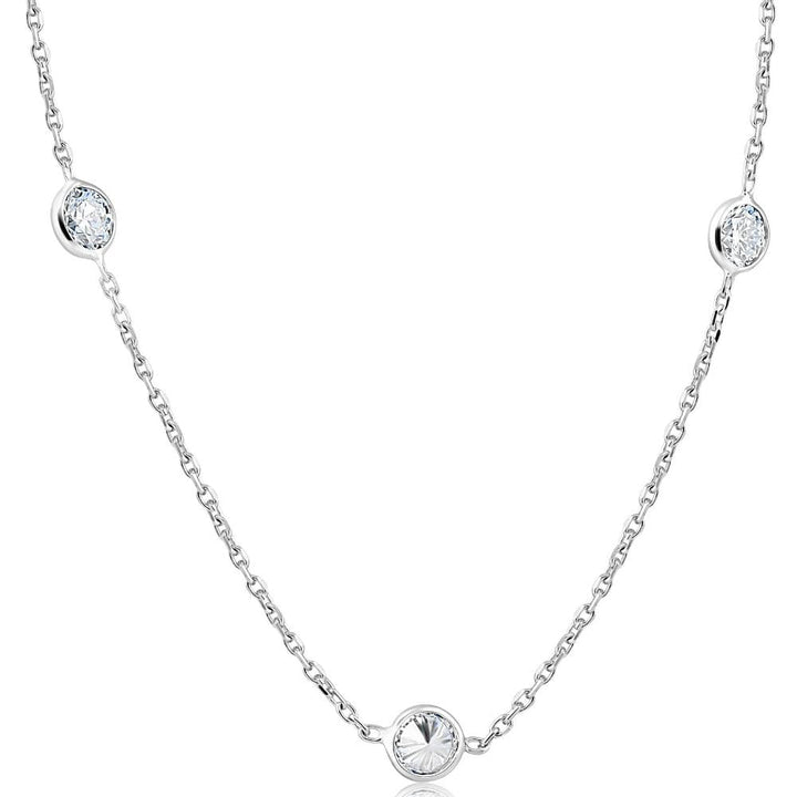 This 2ct Diamonds The Yard Necklace by Pompeii3 exudes effortless sophistication. Ten round bezel-set lab-grown diamonds are spaced along an 18' polished white gold chain, creating a refined, minimalist sparkle.