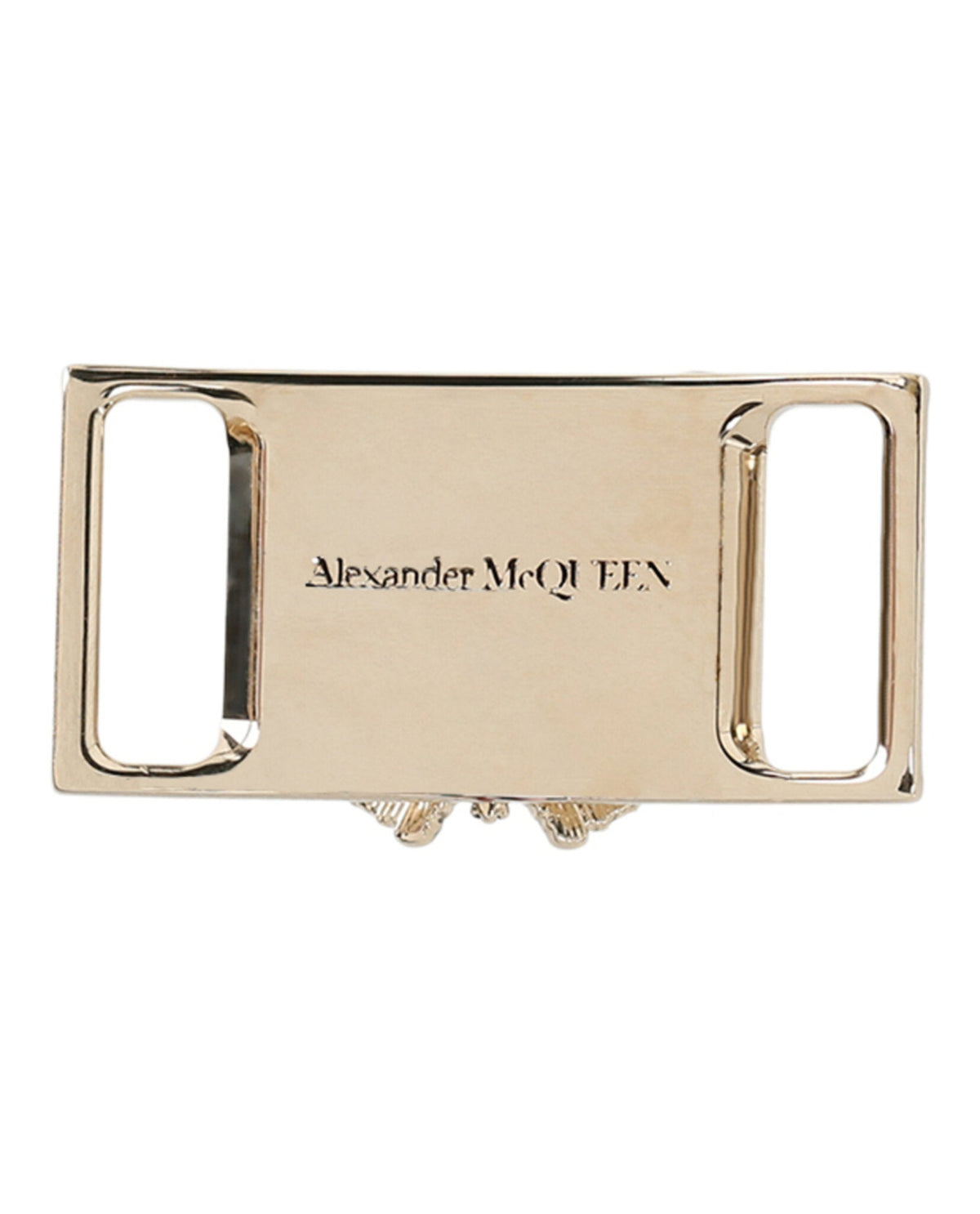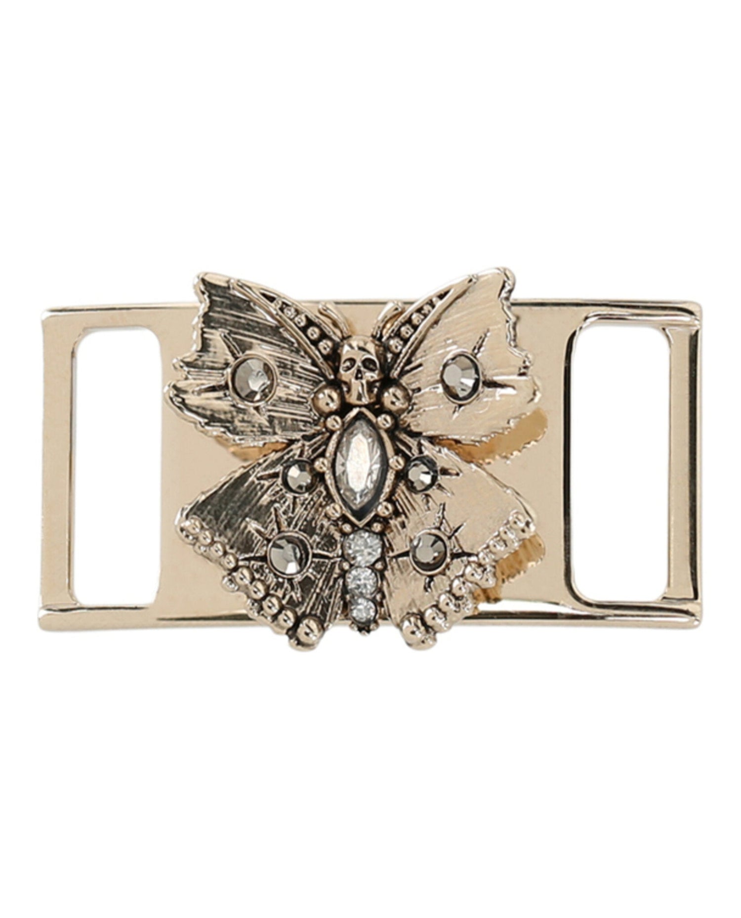 This Butterfly Shoelace Plate by Alexander McQueen showcases a stunning butterfly design with crystal embellishments at the front. The unique shaped and elegant detailing are perfect for those seeking a statement piece that combines nature's beauty with luxury. Ideal for special occasions or as a chic addition to any outfit, this piece embodies grace and transformation.