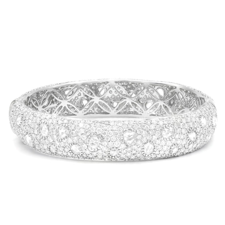 This Diamond Pave Bangle by Diana M epitomizes opulence. Designed in 18kt white gold and adorned with intricate micropavé and rose-cut diamonds totaling 18.30 cts tw, it is a breathtaking piece for those who desire luxury beyond compare.