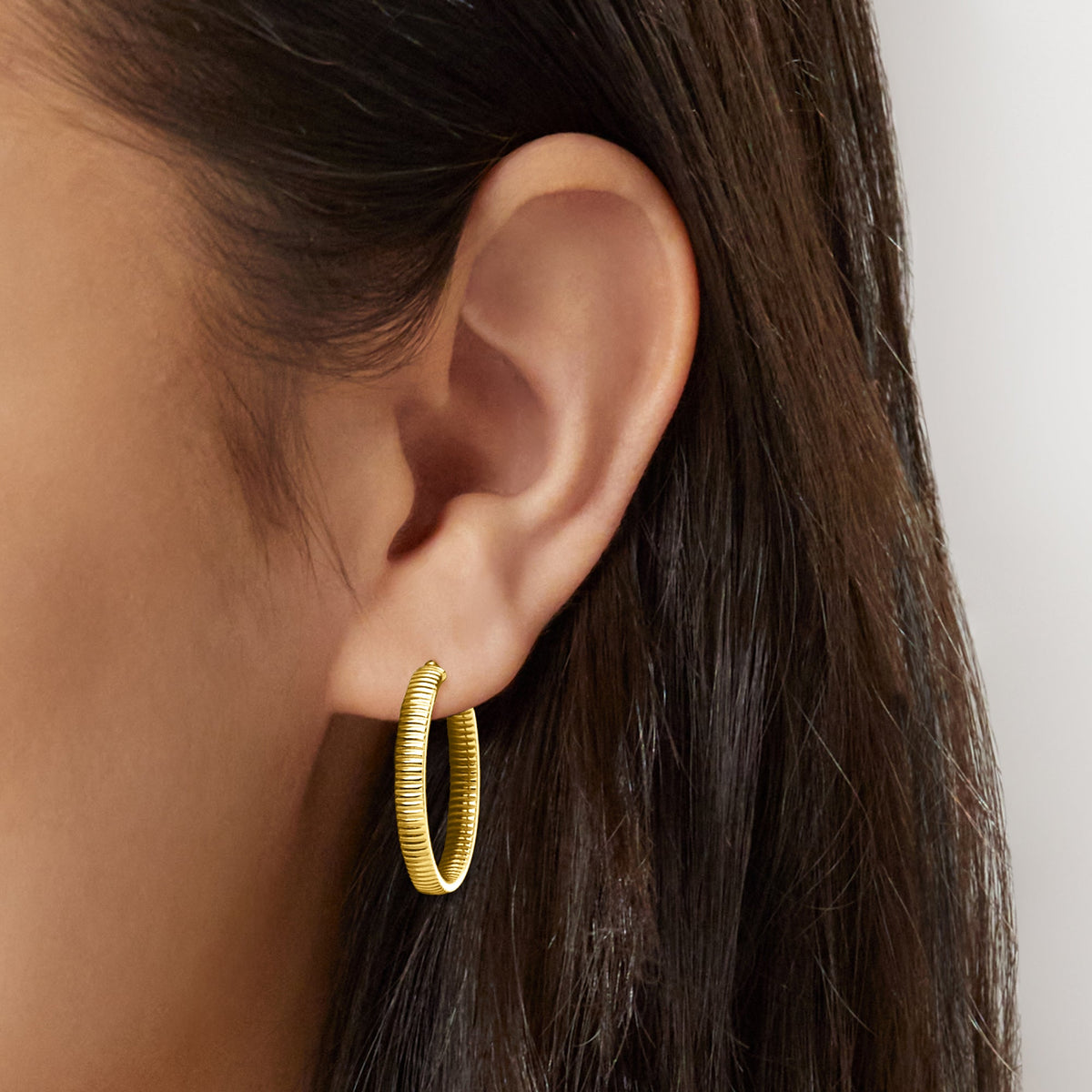 Canaria Italian 10kt Yellow Gold Ribbed Hoop Earrings