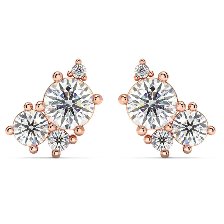 These G/VS 2.50Ct Diamond Studs Bouquet Earrings by Pompeii3 feature eight graduated round brilliant cut lab-grown diamonds, set in solid 14k rose gold. The earrings measure 11.8mm wide, adding a luxurious touch to any outfit with their radiant sparkle.