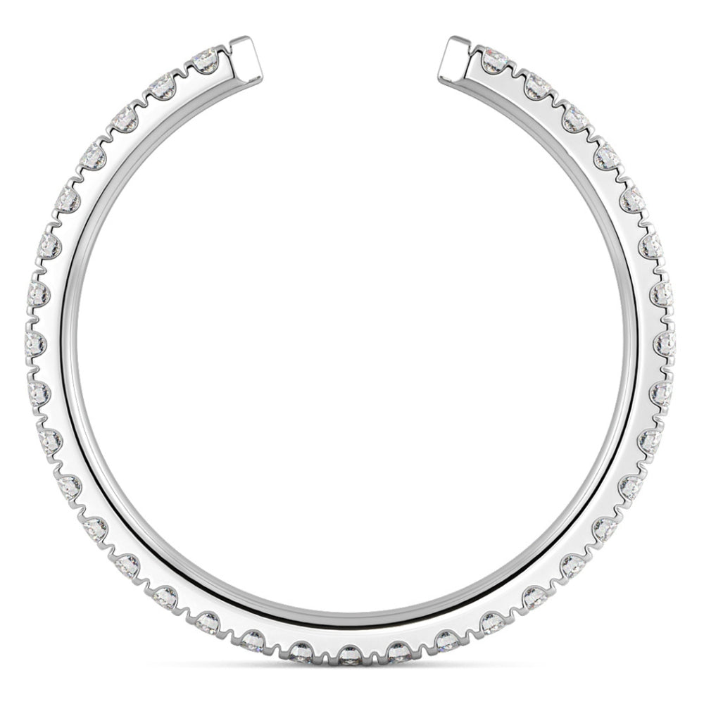 This 1/2Ct Pave Diamond Open Wedding Ring 14k Gold Stackable Band Lab Grown by Pompeii3 is a stunning piece designed with 35 round brilliant cut and round cut lab-grown diamonds. These diamonds are pave prong set around a solid 14k gold band, creating a striking yet delicate design. The open, stackable style offers versatility, making it perfect for layering with other rings, wearing alone, or complementing an engagement ring. This modern and timeless piece will add sparkle to any occasion.