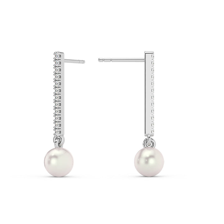 6mm Pearl & Diamond Dangle Earrings Women's 14k Gold Tennis Earrings Lab Grown