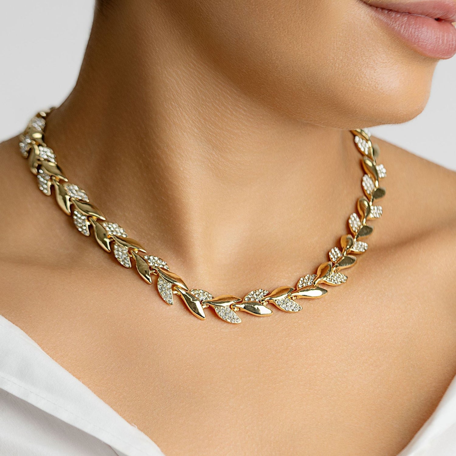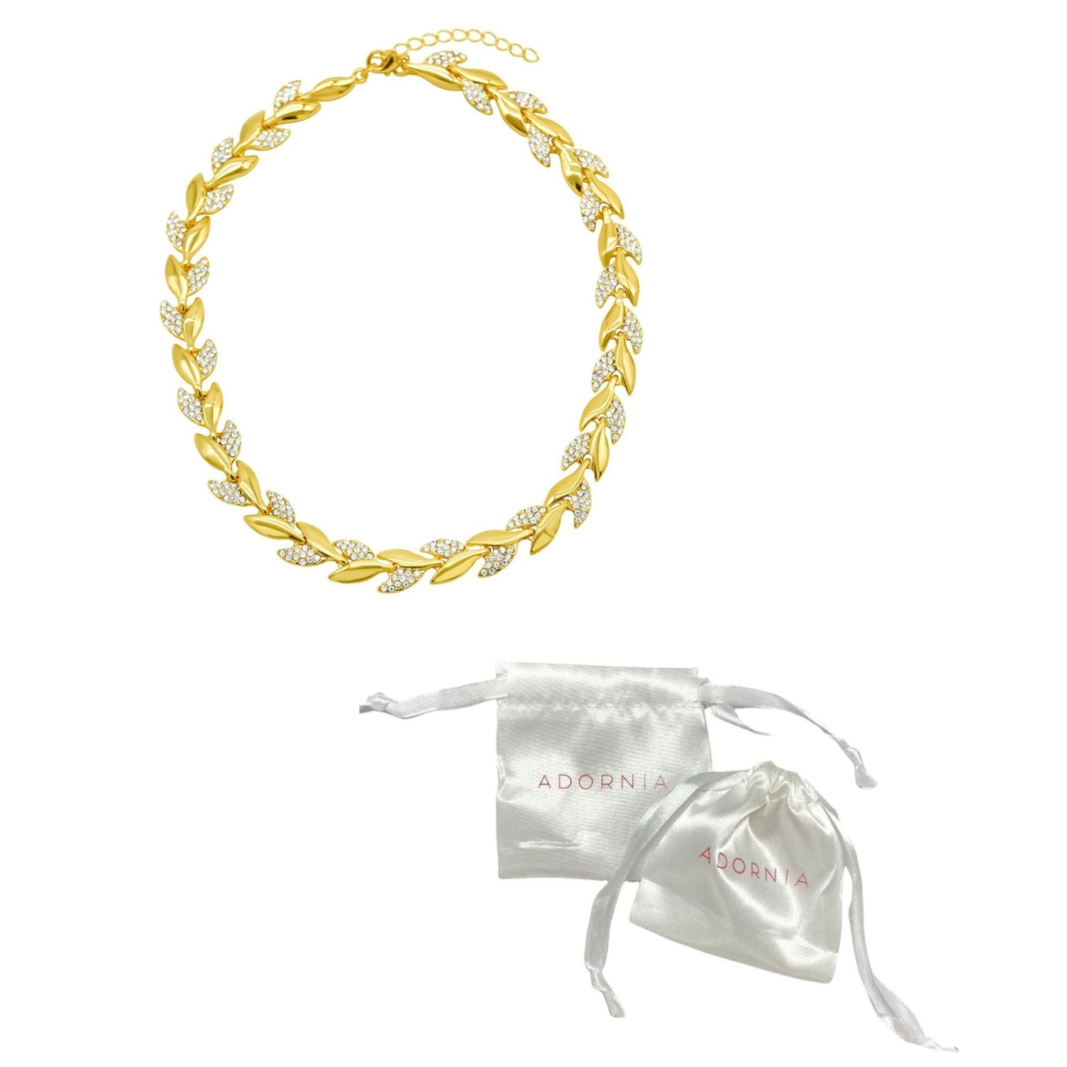 The 14K Gold Plated Crystal Leaf Necklace by Adornia offers an elegant and trendy design. Set in 14K yellow gold plated brass, this necklace features a lovely leaf motif adorned with sparkling crystals, perfect for adding a touch of nature-inspired beauty to your look.