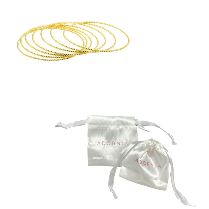 This Skinny Bangle Set by Adornia brings effortless layering style. The set of seven slim bangles in 14k gold-plated brass adds a sleek and polished touch to wrists, perfect for stacking.