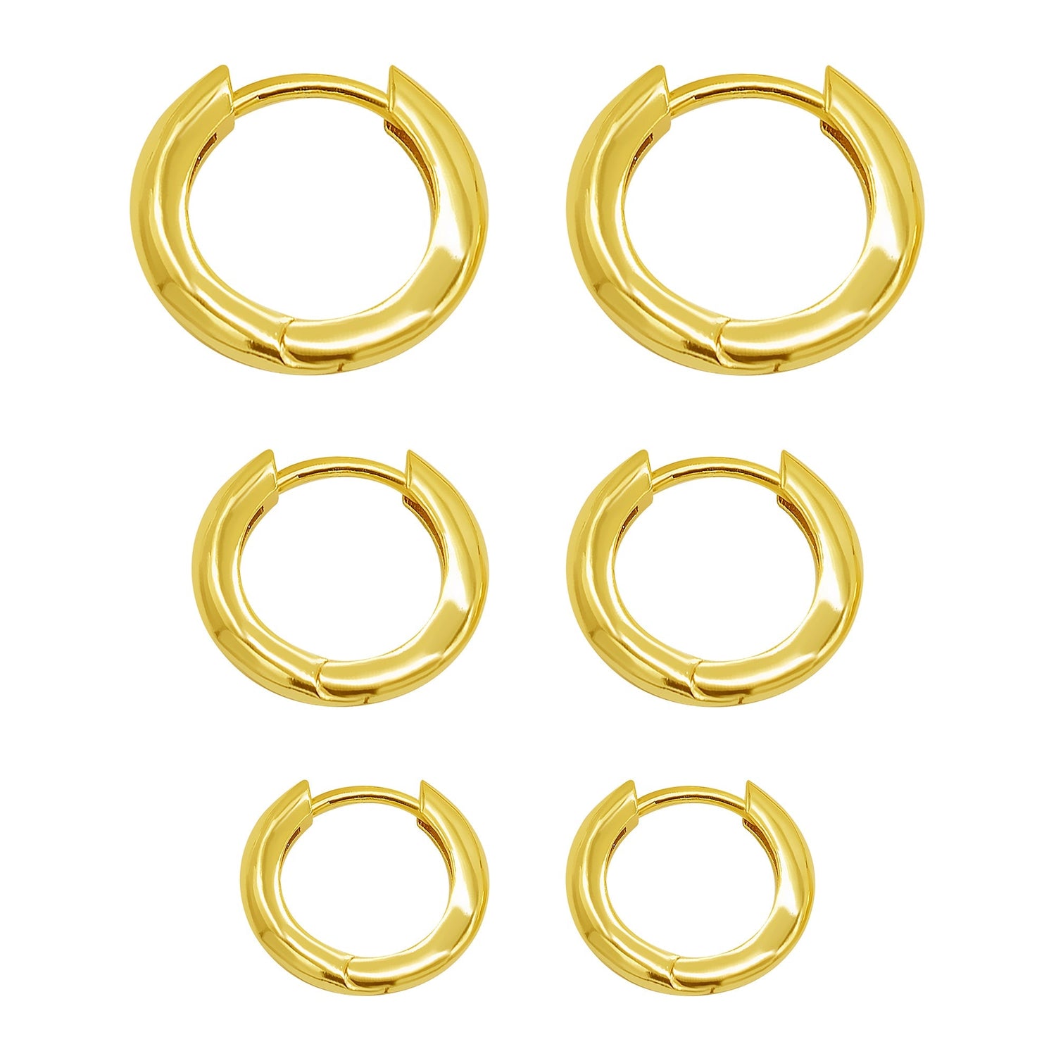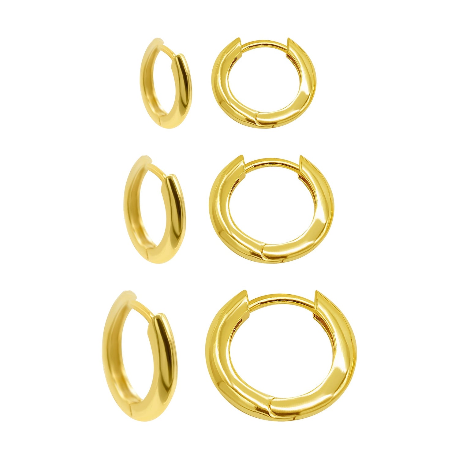 14K Gold Plated 3-Huggie Hoop Earrings Set