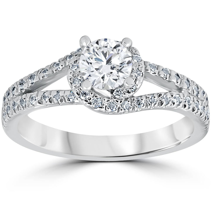 This 1 1/6ct Twist Diamond Engagement Ring by Pompeii3 is a dazzling display of elegance and sophistication. The 3/4ct center stone is complemented by 52 accent diamonds, all set in solid 14k white gold. This ring’s intricate twist design represents the eternal bond between two people, making it a perfect choice for an engagement or anniversary ring.