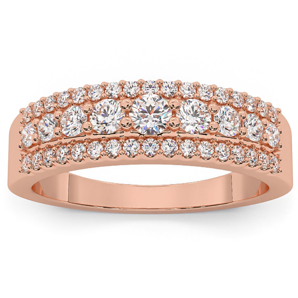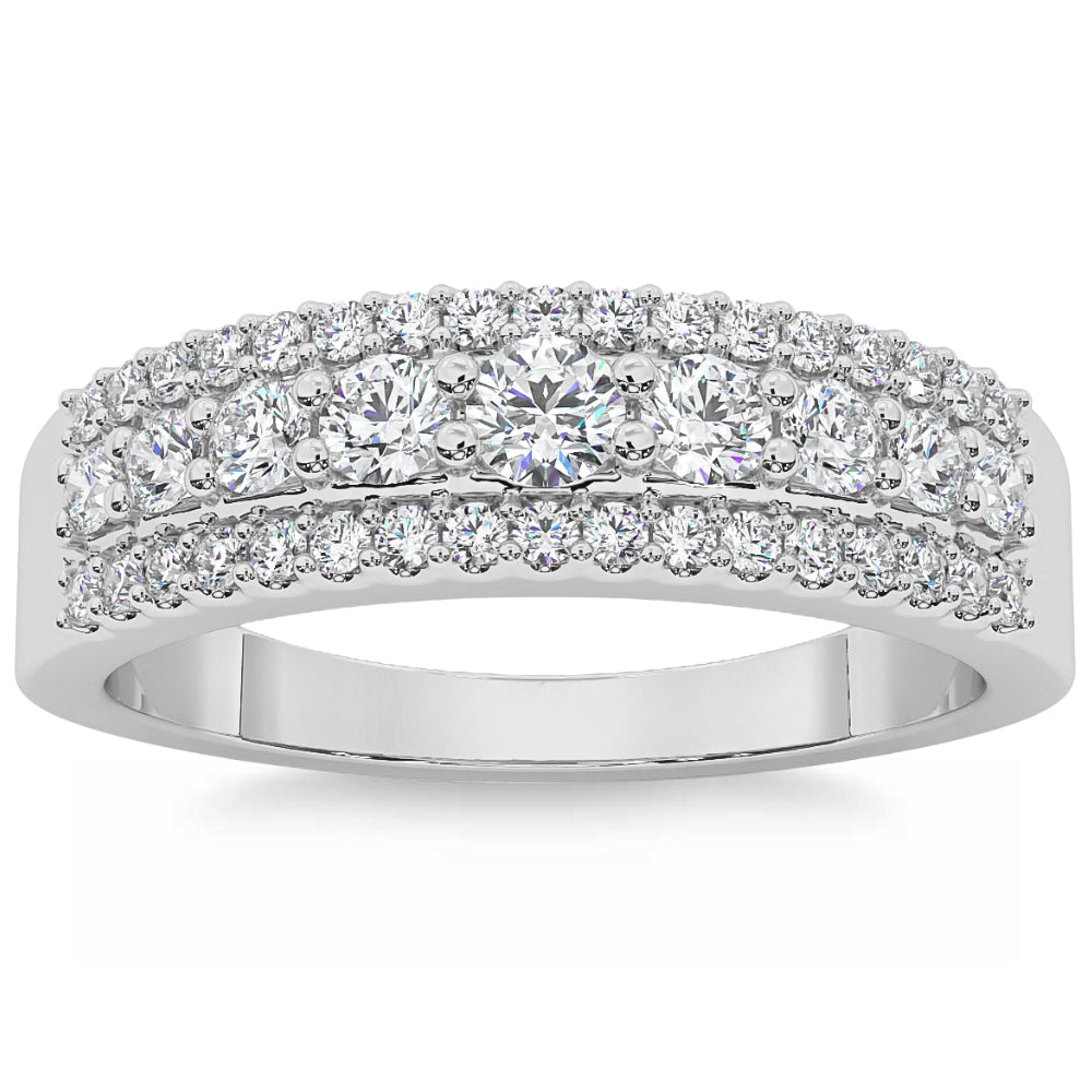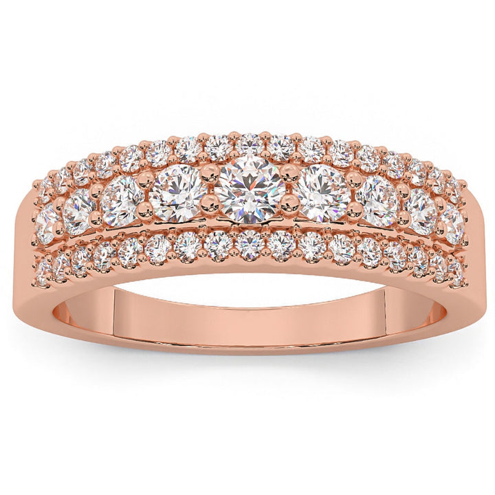 5/8 ct Pave 3-Row Diamond Wedding Ring Stackable Band 14k Gold Lab Grown