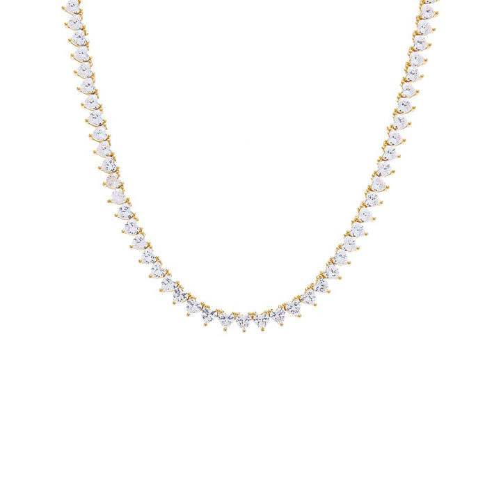 This Heart Tennis Necklace by Adina Eden is a romantic take on the tennis necklace, featuring sparkling heart-shaped cubic zirconia stones set in polished gold plating. Perfect for adding a touch of feminine sparkle to any ensemble.