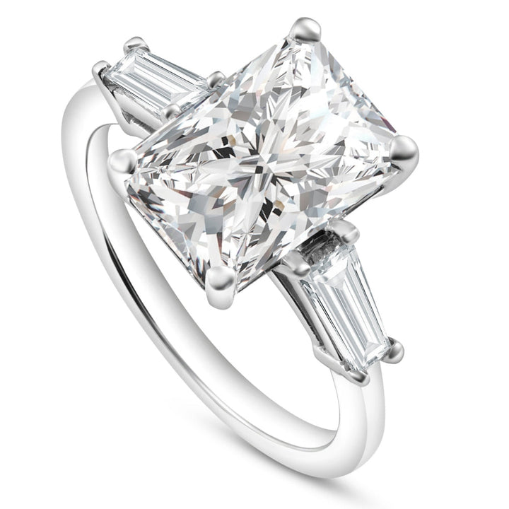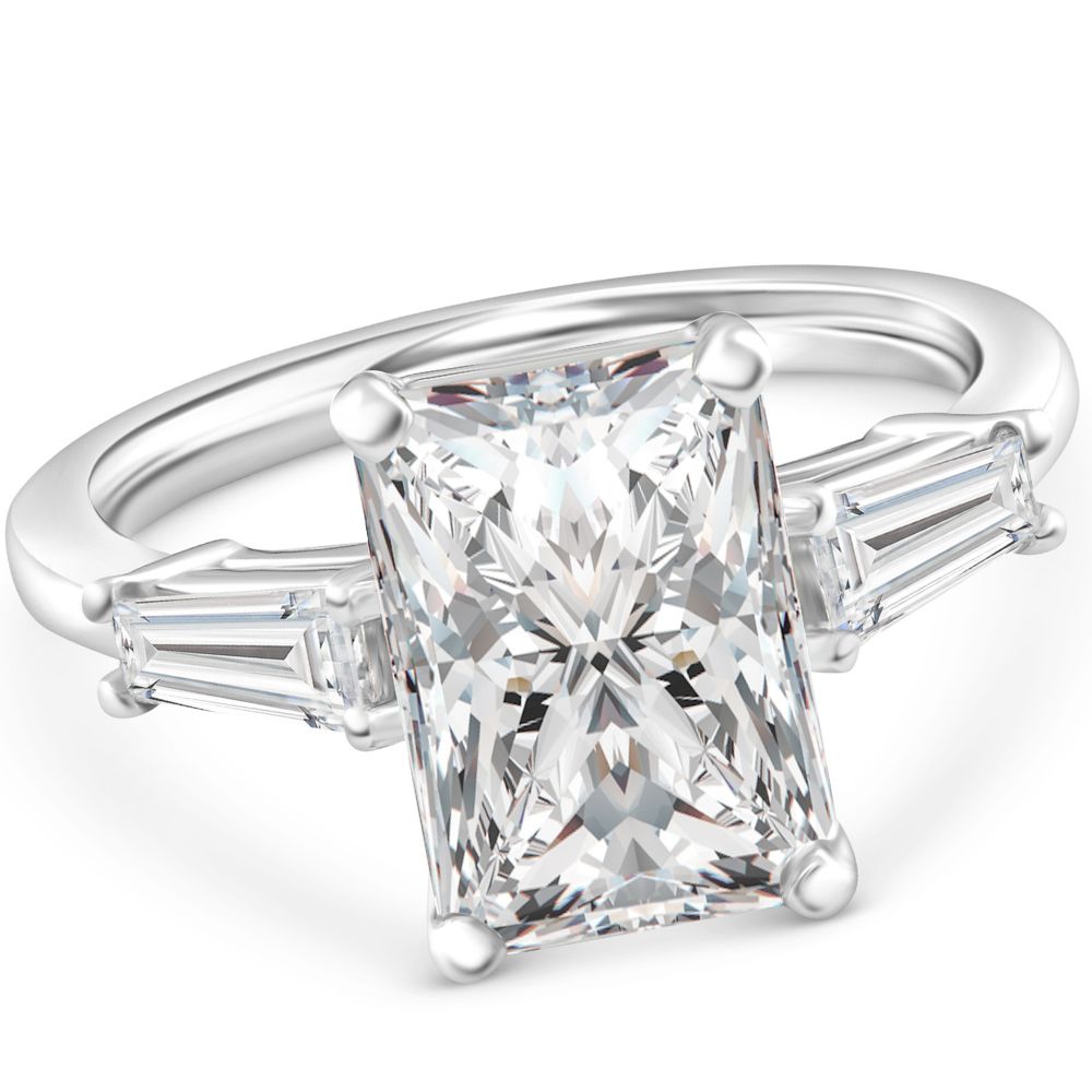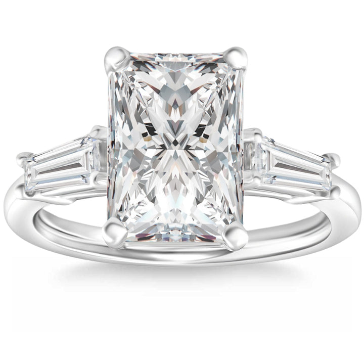 4 3/4 ct Radiant Cut & Baguette Diamond Engagement Ring 14k White Gold Lab Grown