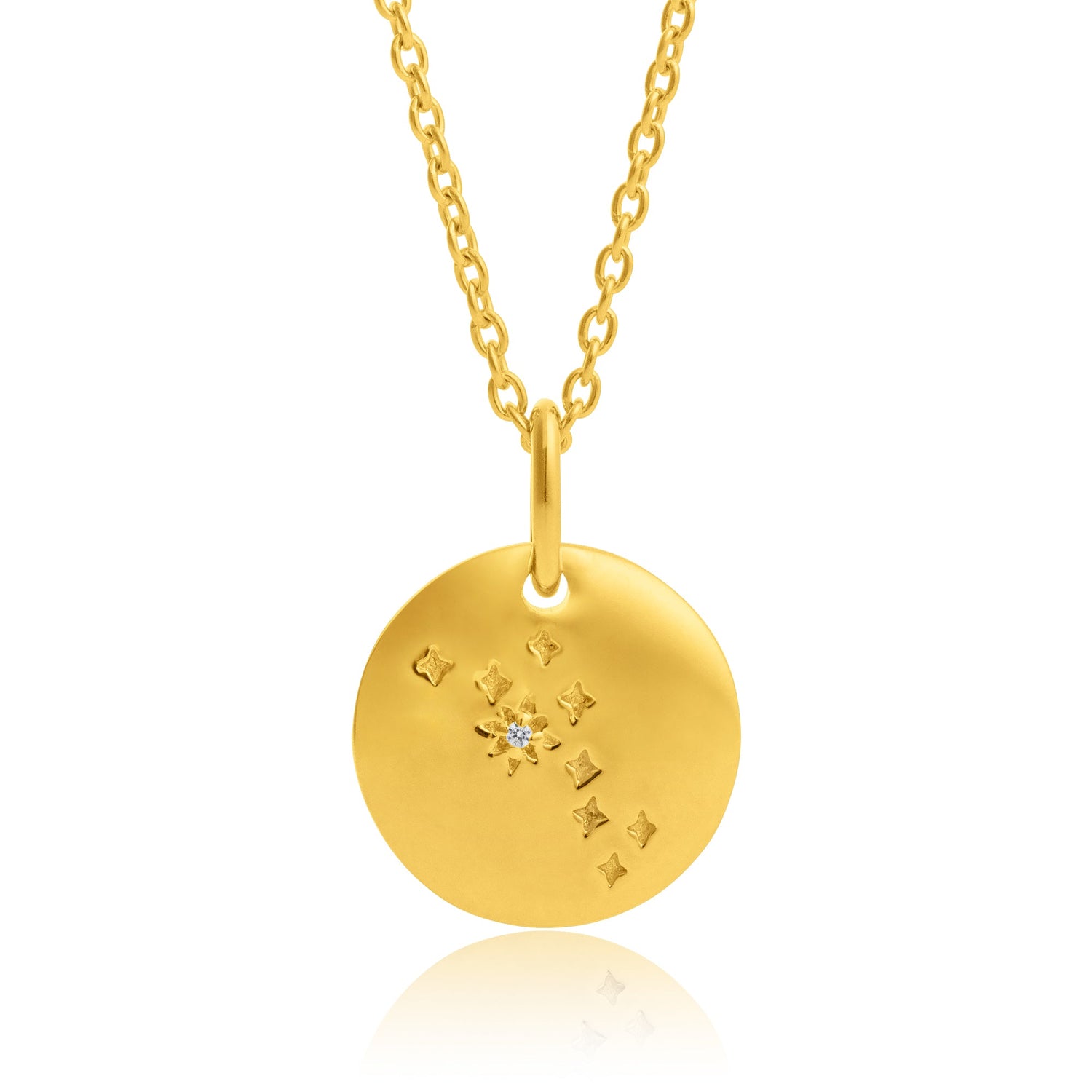 Vermeil Gemini Zodiac Pendant Necklace with White Sapphire Accents