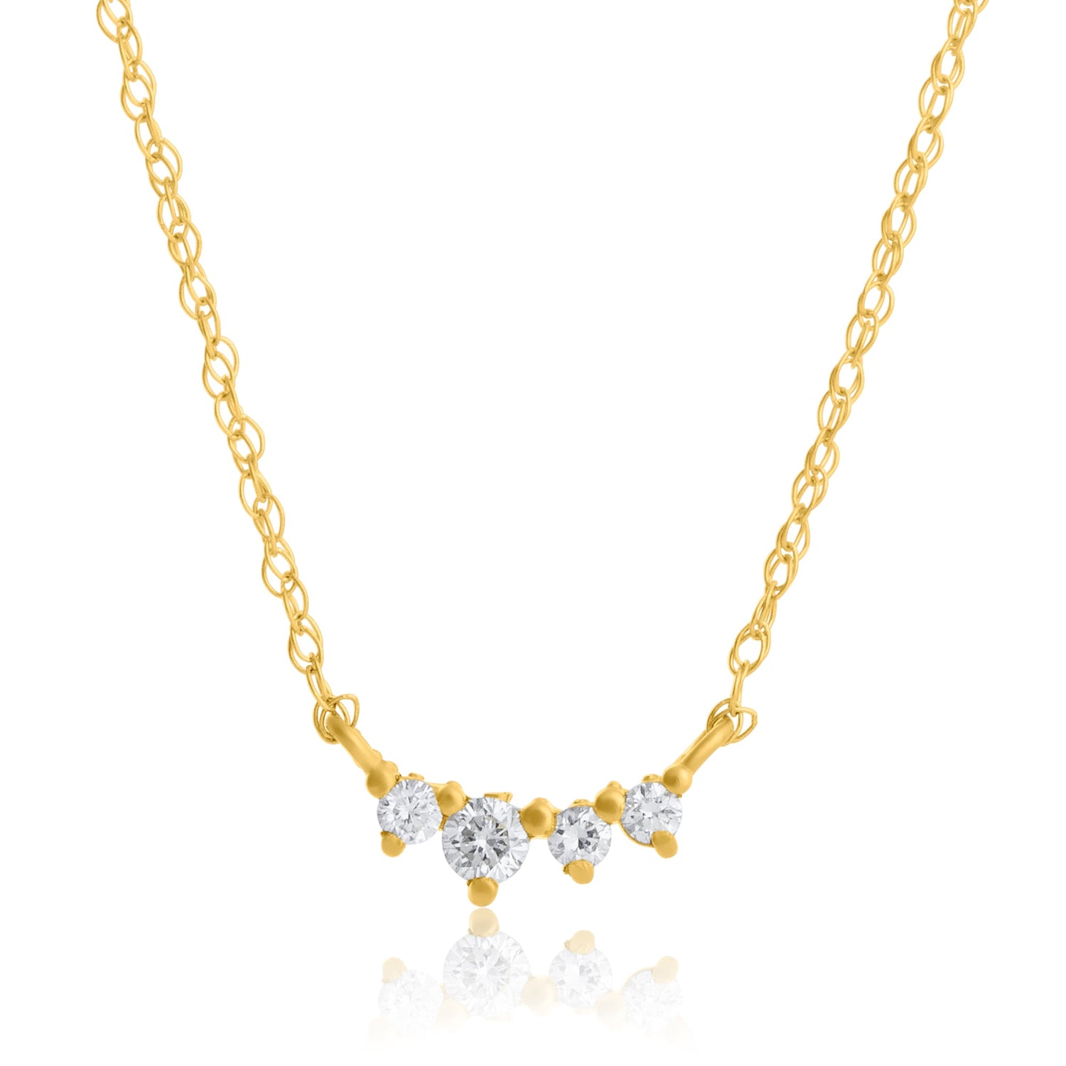 This 4-Stone Diamond Necklace by MaxColor is a delicate piece of understated luxury. Crafted in radiant 14k yellow gold, it features four shimmering lab-grown diamonds, perfect for layering or wearing solo with elegance.