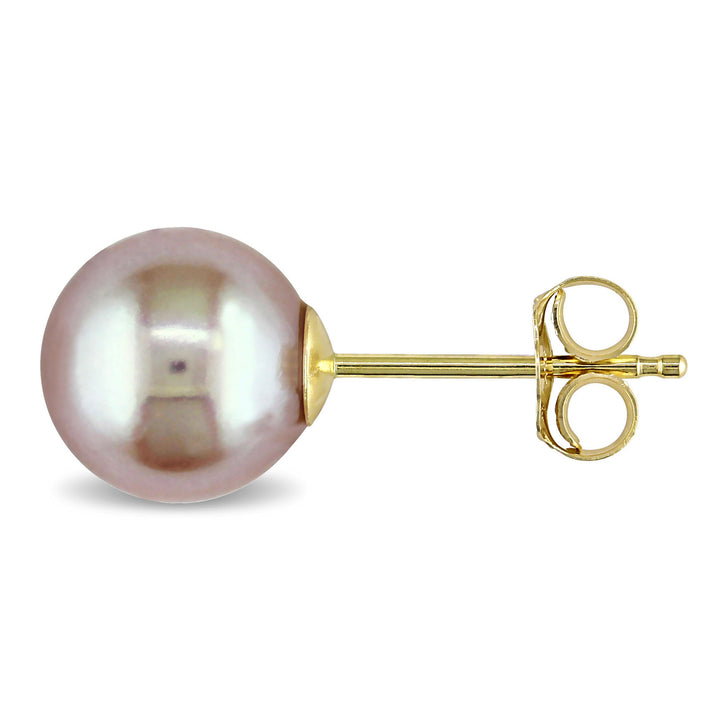 7-7.5mm Pink Cultured Freshwater Pearl Stud Earrings in 14k Yellow Gold