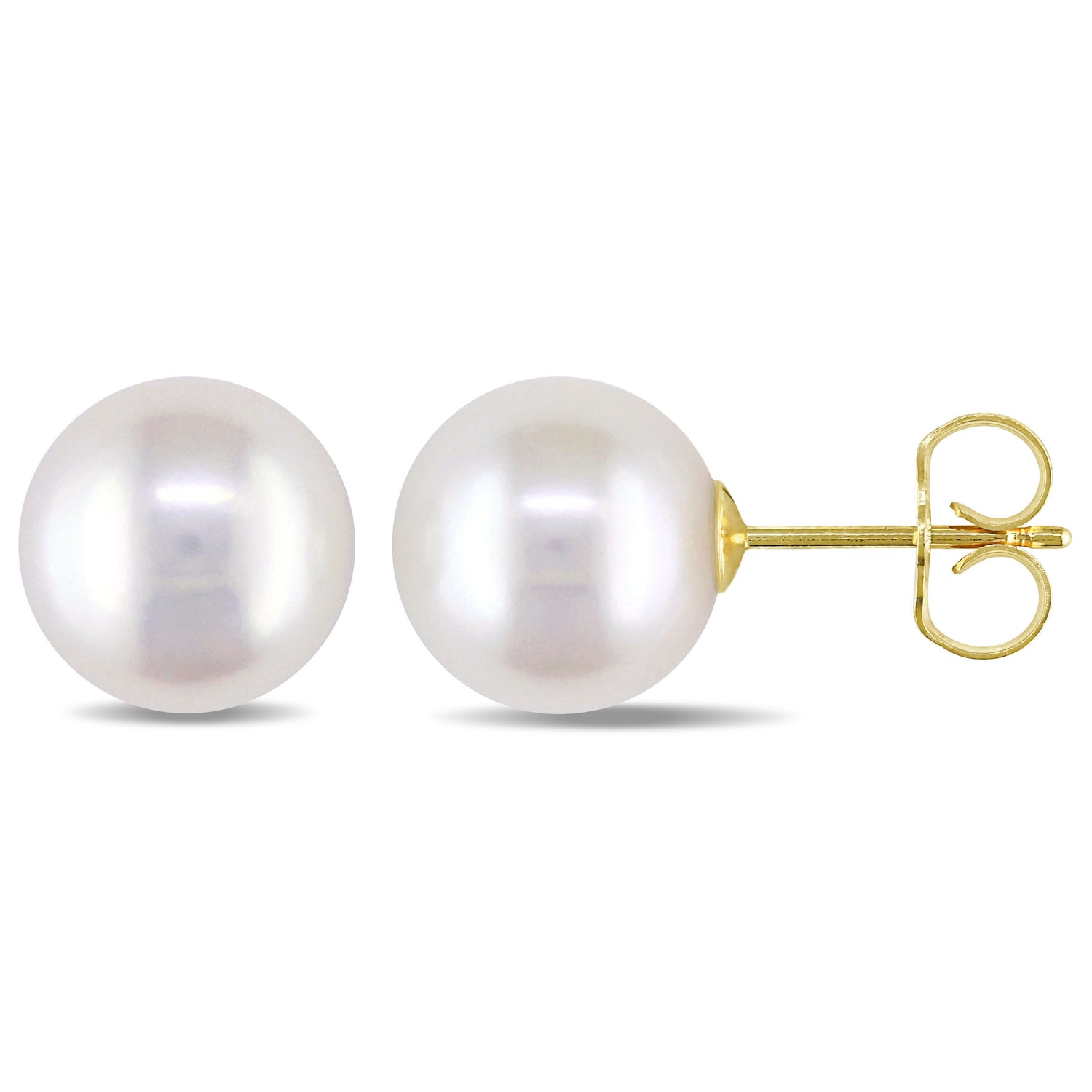Crafted in 14K yellow gold, featuring 9-9.5mm white cultured freshwater pearls. Butterfly back closures.