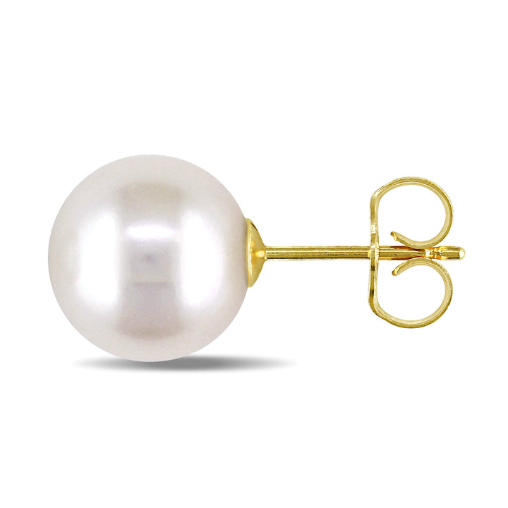 9-9.5mm White Cultured Freshwater Pearl Stud Earrings in 14k Yellow Gold