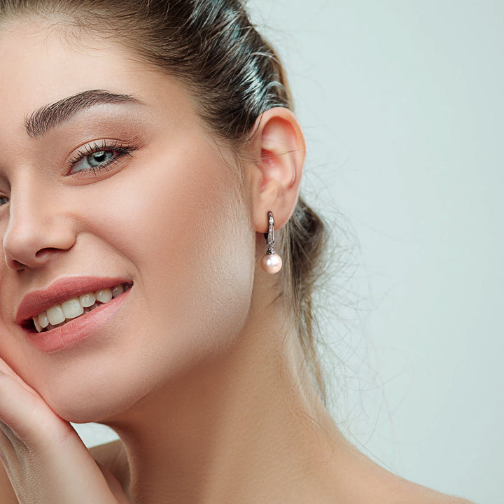 These White Cultured Freshwater Pearl and Diamond Drop Earrings by Mimi & Max blend graceful charm with refined sparkle. Luminous freshwater pearls gracefully dangle from sterling silver settings accented by sparkling diamonds, symbolizing purity and sophistication. Effortlessly elegant, they're perfect for both casual elegance and special occasions.