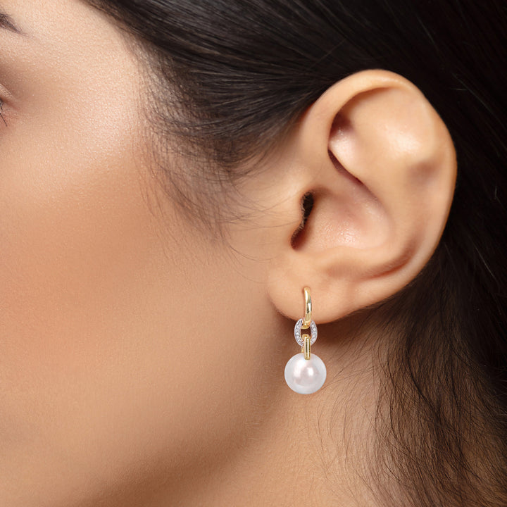 These Cultured Freshwater Pearl and Diamond Connect Dangle Earrings by Mimi & Max exude graceful elegance with a modern silhouette. Featuring luminous 11–12mm white freshwater cultured pearls paired with shimmering round diamonds, these two-tone dangle earrings add sophisticated movement and luxurious sparkle. Ideal for adding timeless beauty to evening wear or elevating everyday attire, these earrings are a testament to refined craftsmanship and effortless style.