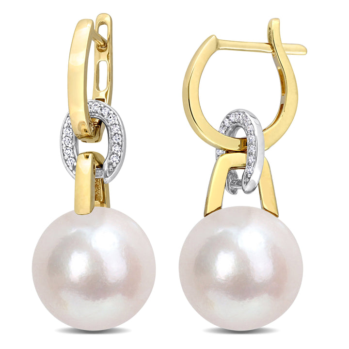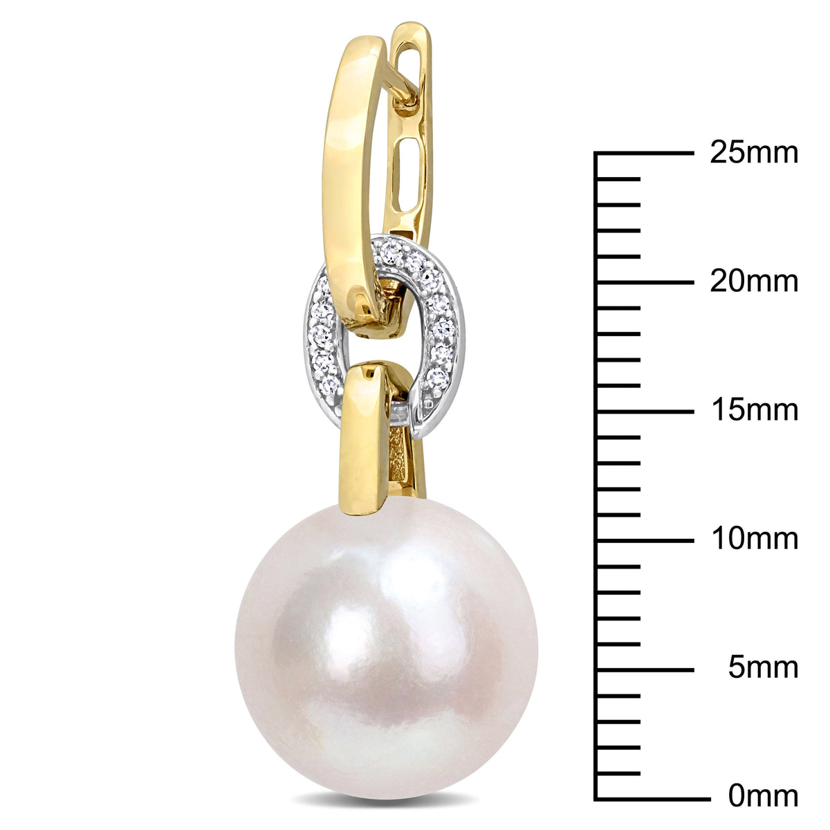 11 12mm Cultured Freshwater Pearl & 1/10ct TDW Diamond Earrings in 14k Yellow and White Gold