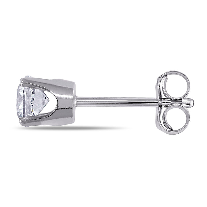 Crafted in 10K white gold with 3/4 carat total weight created white sapphires in a four-prong setting. Butterfly back closure.