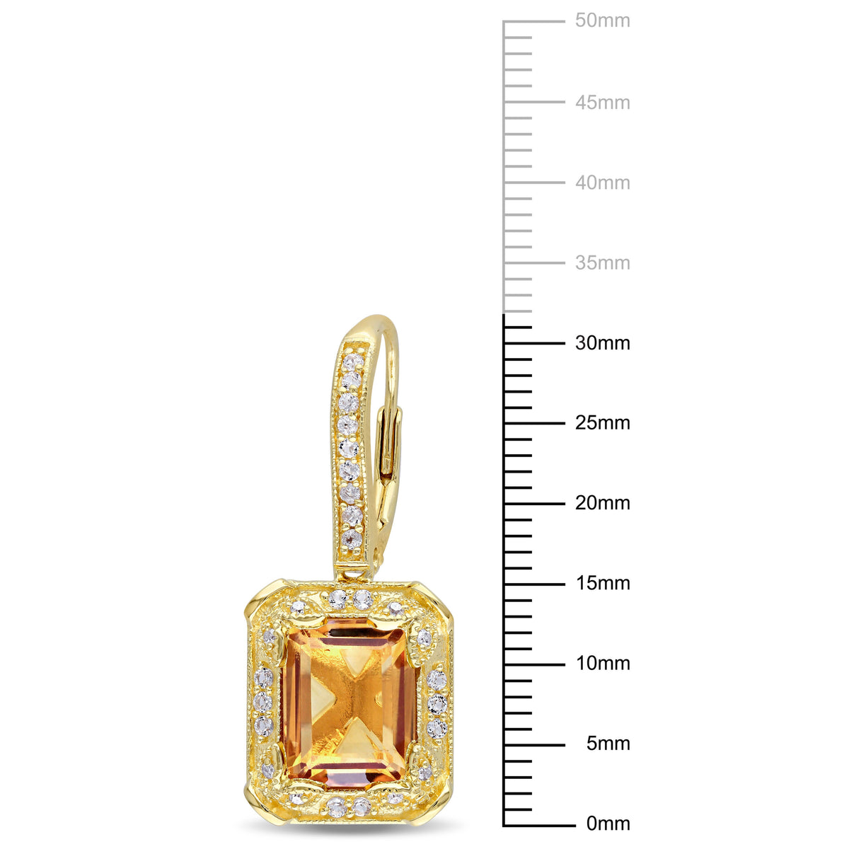 Crafted in yellow-plated silver, featuring 6 3/5ct TGW citrine, white topaz, and 1/10ct TDW diamonds. Leverback closure.