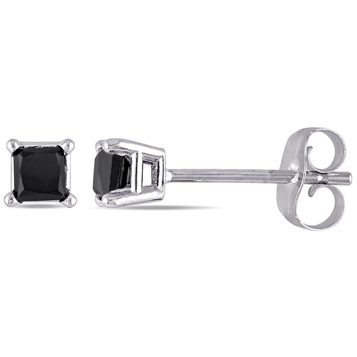 1ct TW Princess Cut Black Diamond Stud Earrings in 10k White Gold