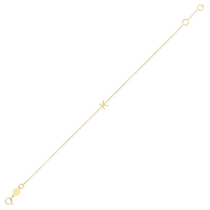 14K Solid Yellow Gold K Mini Initial Bracelet