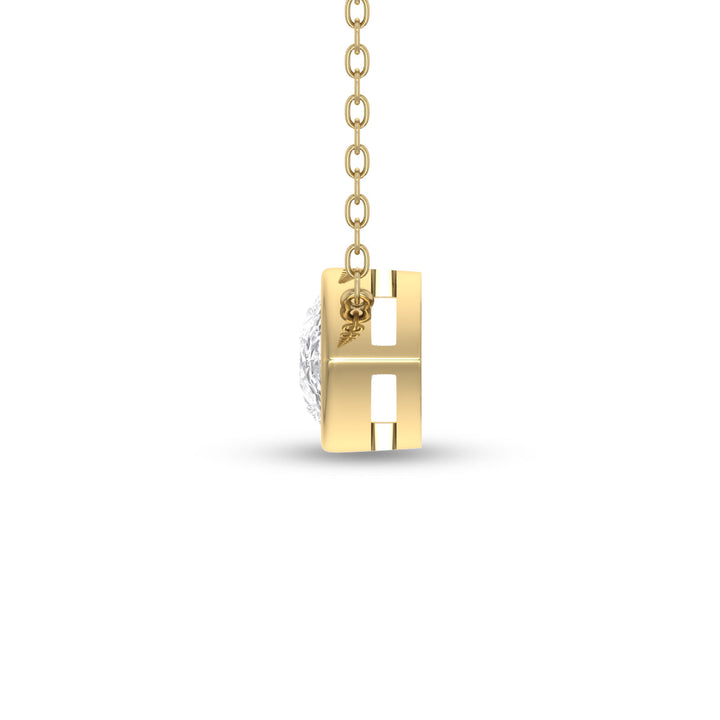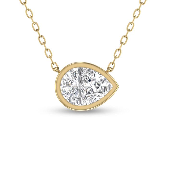 Set in 14k yellow gold with a 0.5 carat lab-grown pear-shaped diamond. Includes an 18' link chain and bezel setting.