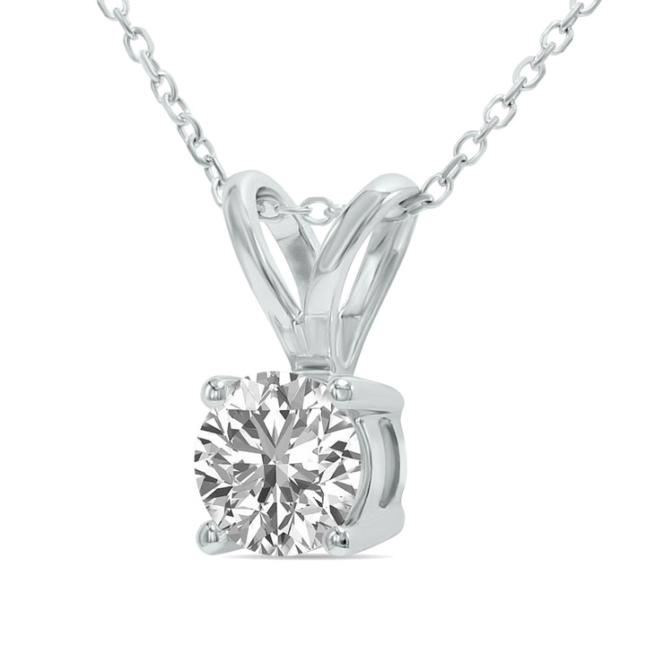 Lab Grown 3/4 Carat Diamond Solitaire Pendant In 14K White Gold