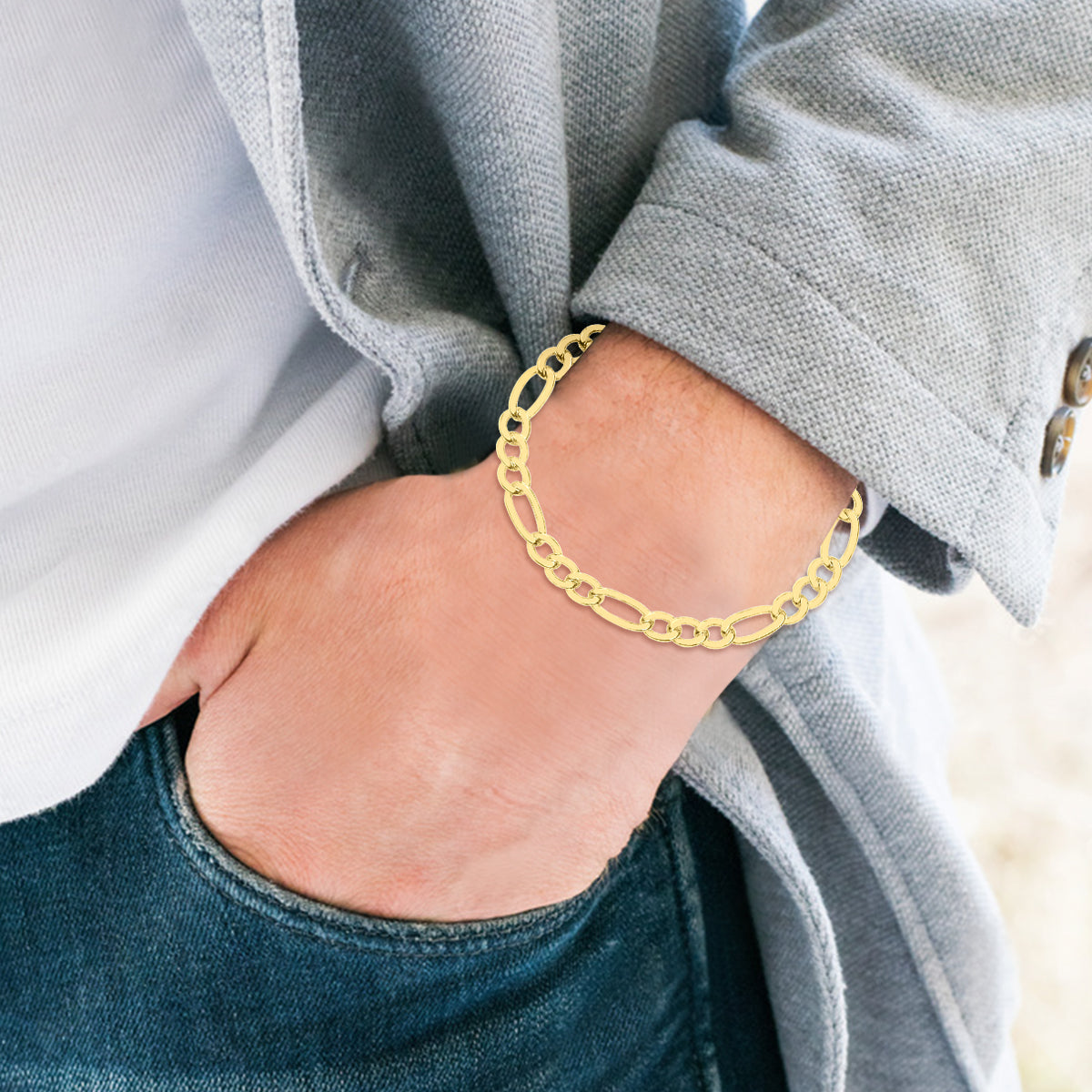 This 14K Filled 7.8mm Figaro Bracelet by SSELECTS adds classic Italian-inspired style to any wrist. It's bold links and polished finish make it an elegant yet everyday staple, secured with a lobster clasp.