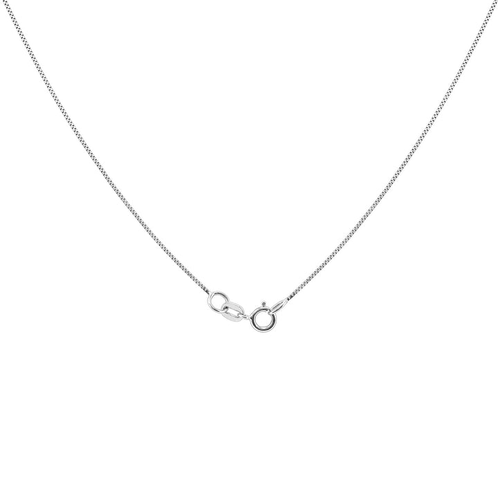 This 14K White Gold Box Chain with Spring Ring Clasp by SSELECTS is a simple, dainty chain designed for everyday elegance. Measuring 16 inches in length and 0.5mm in width, it’s perfect for small to mid-sized pendants. The standard spring ring clasp ensures security and ease of wear, making this chain an ideal replacement for promotional chains or a subtle addition to your jewelry collection.