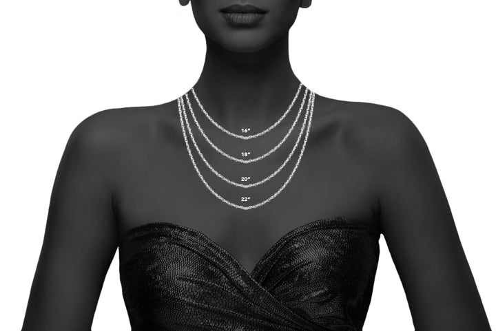 Crafted in solid 14k white gold. Chain length: 16'. Chain width: 0.5mm. Spring ring clasp closure.