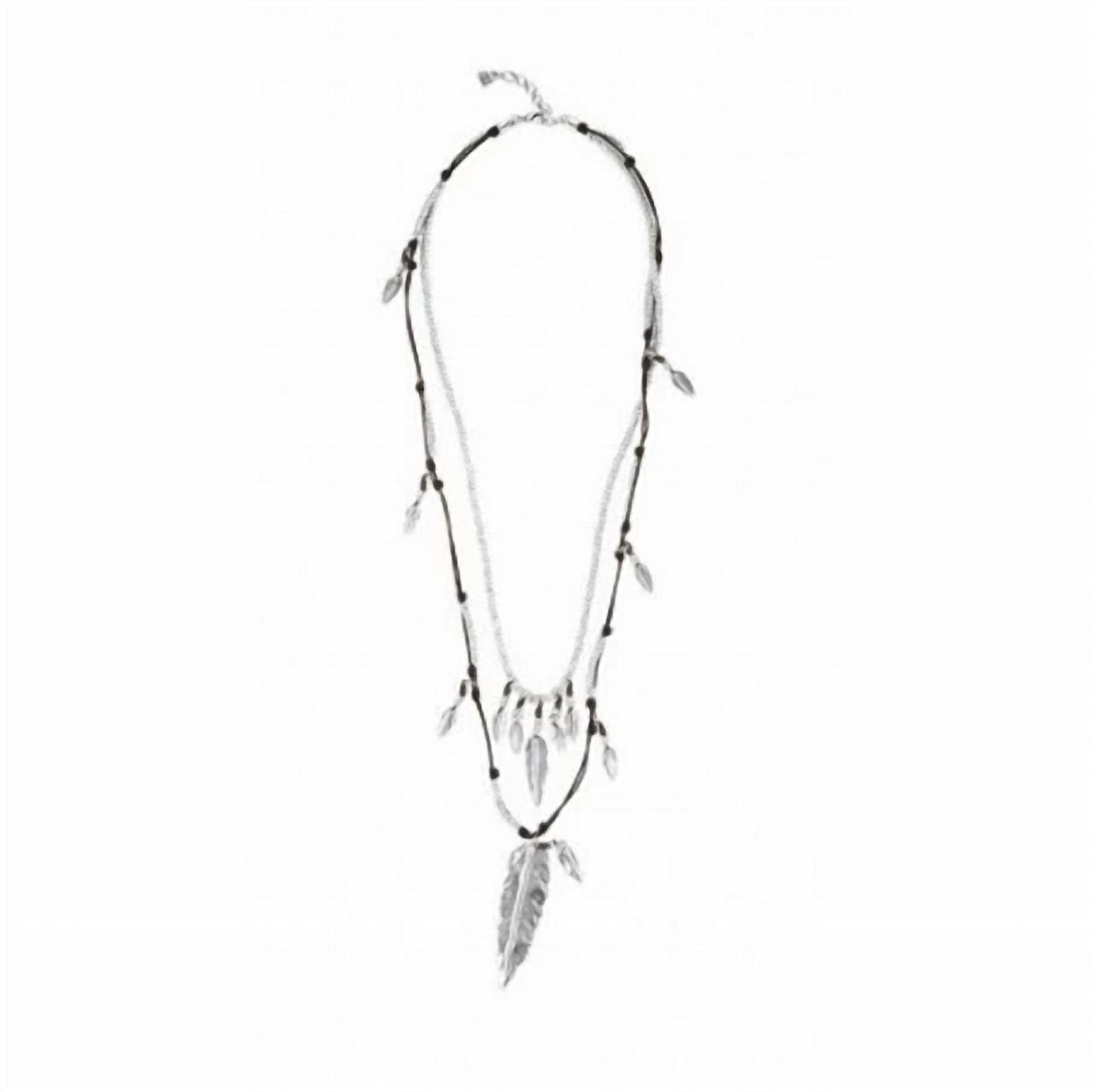 The Pavonearse Multi-Strand Leather Necklace in Silver by UNOde50 blends organic textures and artisanal craftsmanship with silver-plated elements and feather charms. A dramatic and creative piece for the woman who appreciates statement-making accessories.