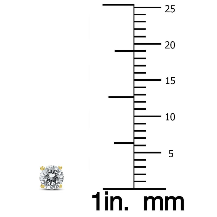 These .25 Ctw Round Diamond Solitaire Stud Earrings in 14K Yellow Gold by SSELECTS are a classic and elegant addition to any jewelry collection. Featuring two round diamonds, each with a weight of 0.125 carat, these earrings are set in a luxurious 14K yellow gold setting. The diamonds, graded J-K in color and I2-I3 in clarity, offer sparkling brilliance that is perfect for both everyday wear and special occasions. The push-back posts provide a secure fit, making these earrings ideal for young adults or second and third piercings.