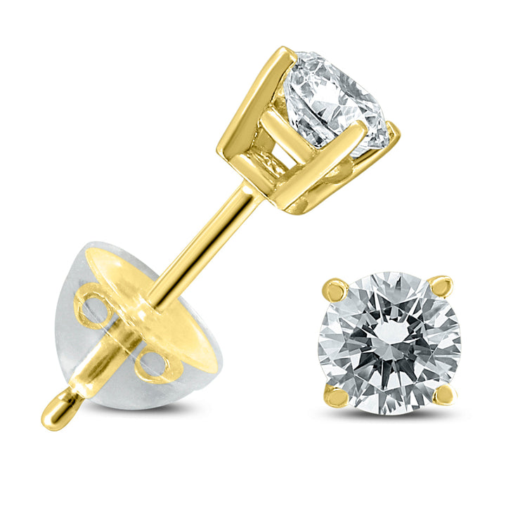 .25 Ctw Round Diamond Solitaire Stud Earrings In 14K With Silicon Backs