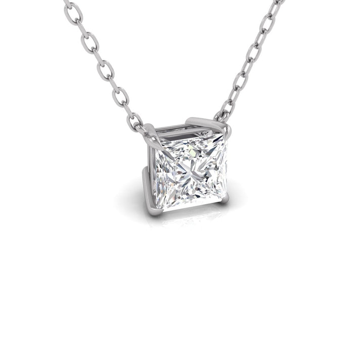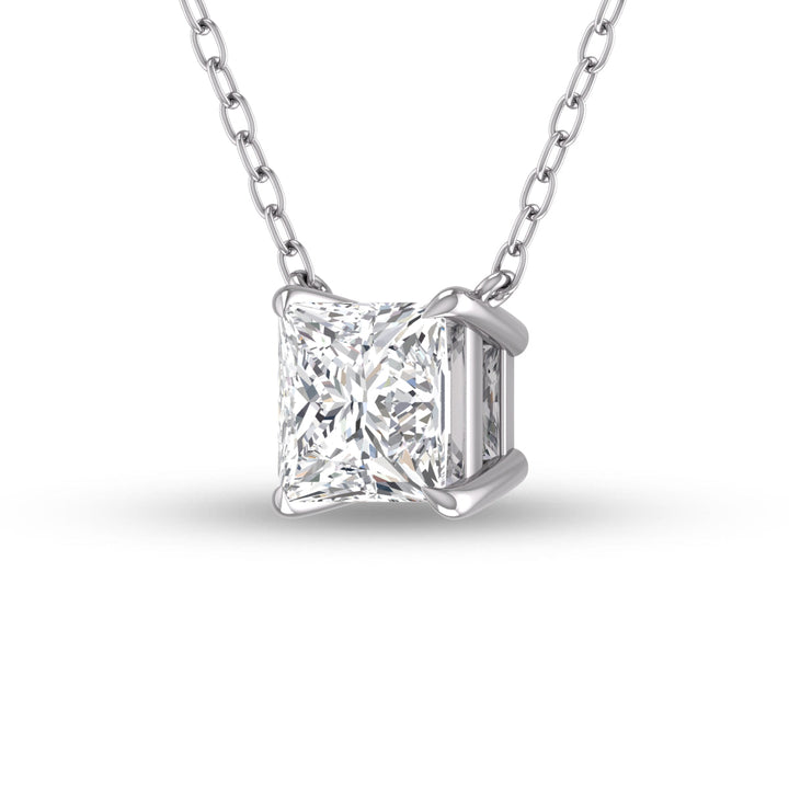 Lab Grown 1 Carat Floating Princess Cut Diamond Solitaire Pendant In 14K White Gold
