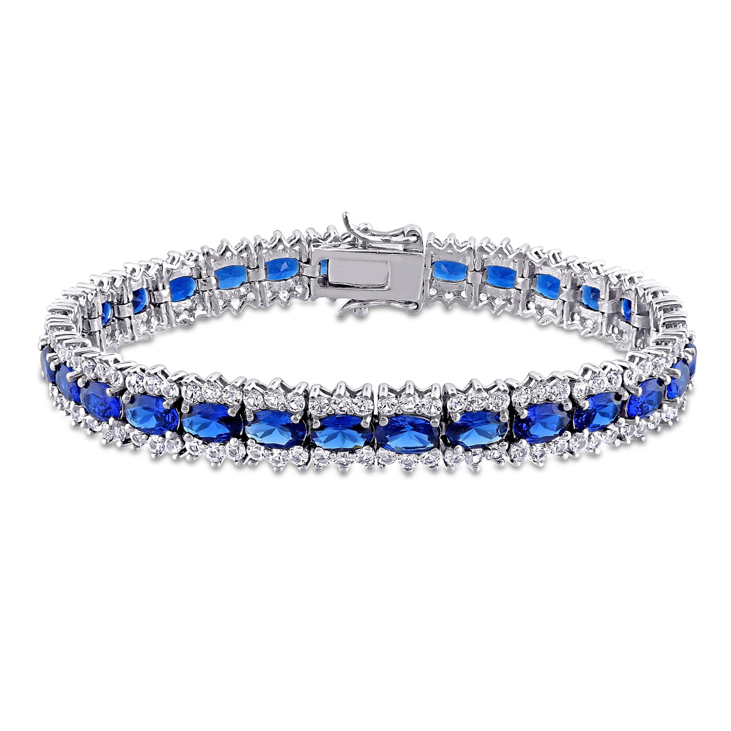 Sterling silver with 28.5 ct total weight; 174 round-cut created white sapphires (3x3mm) and 29 oval-cut created blue sapphires (6x4mm). 7-inch length.