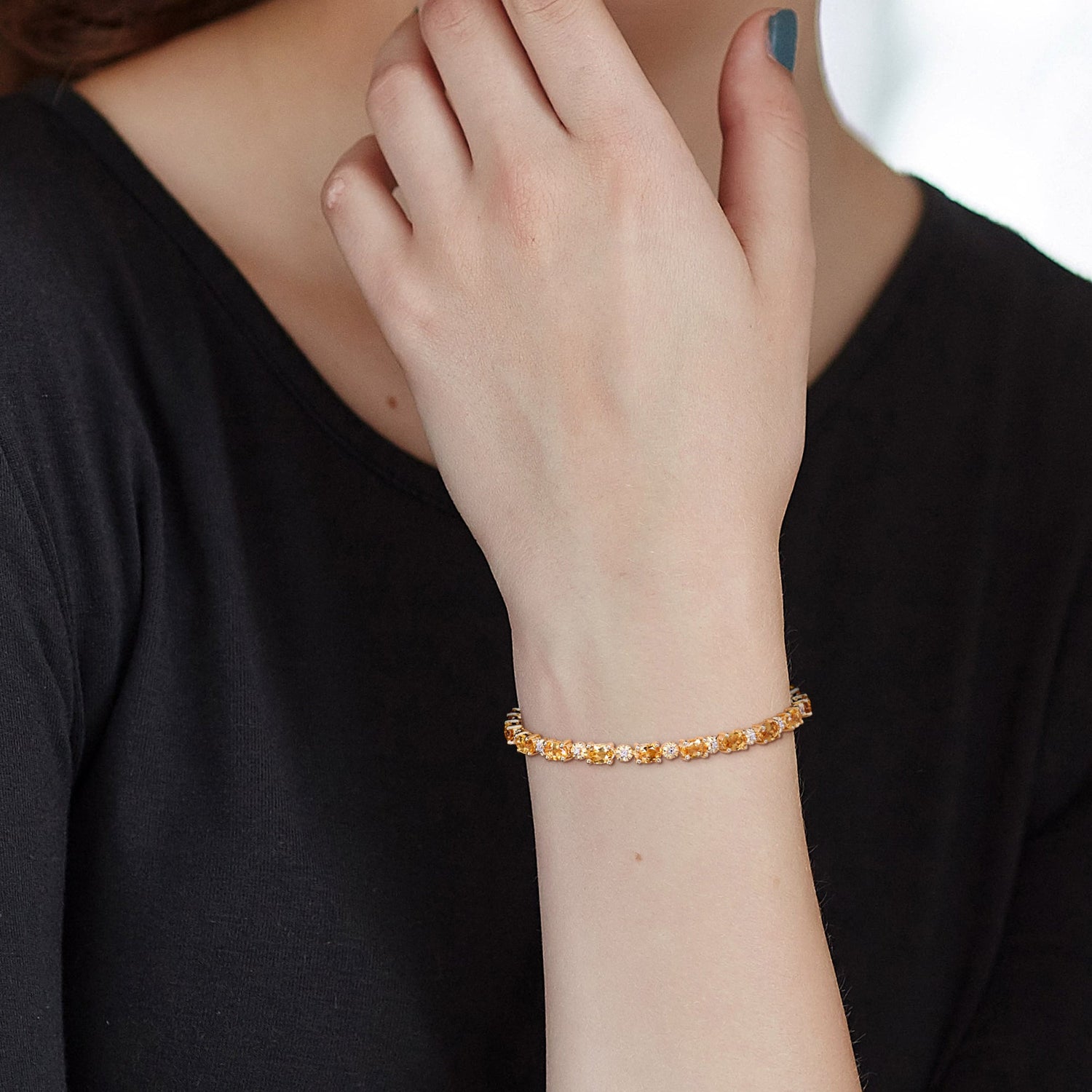 8 1/10ct TW Oval-Cut Citrine and Diamond Accent Tennis Bracelet in Yellow Silver