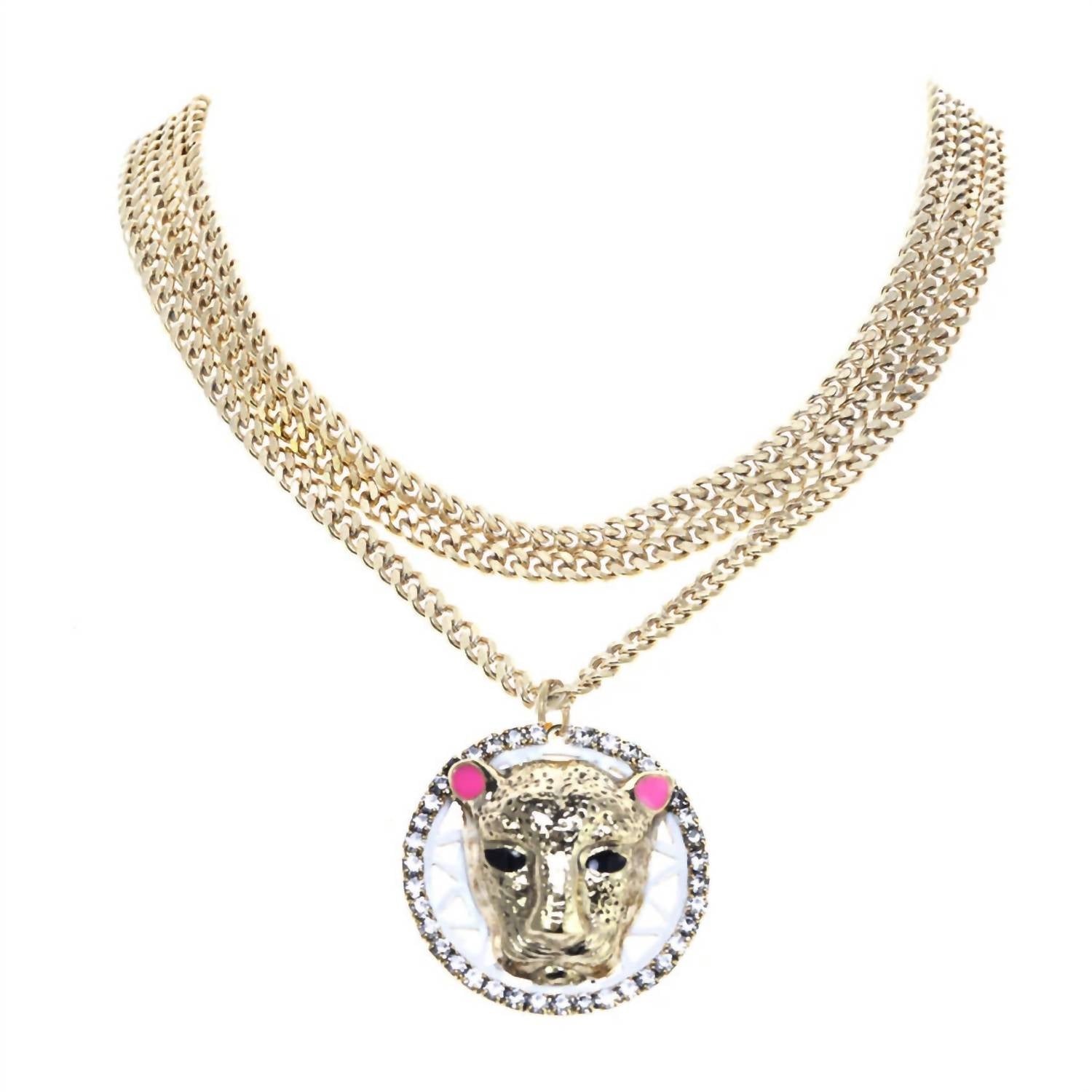 This Antique Plated Jagg Chain in White by TOVA is a beautiful piece that can be worn layered or as a standout piece on It's own. The antique gold plating adds vintage appeal, while the Swarovski crystals and hand-painted enamel add a modern touch, making this necklace the perfect accessory for any occasion.